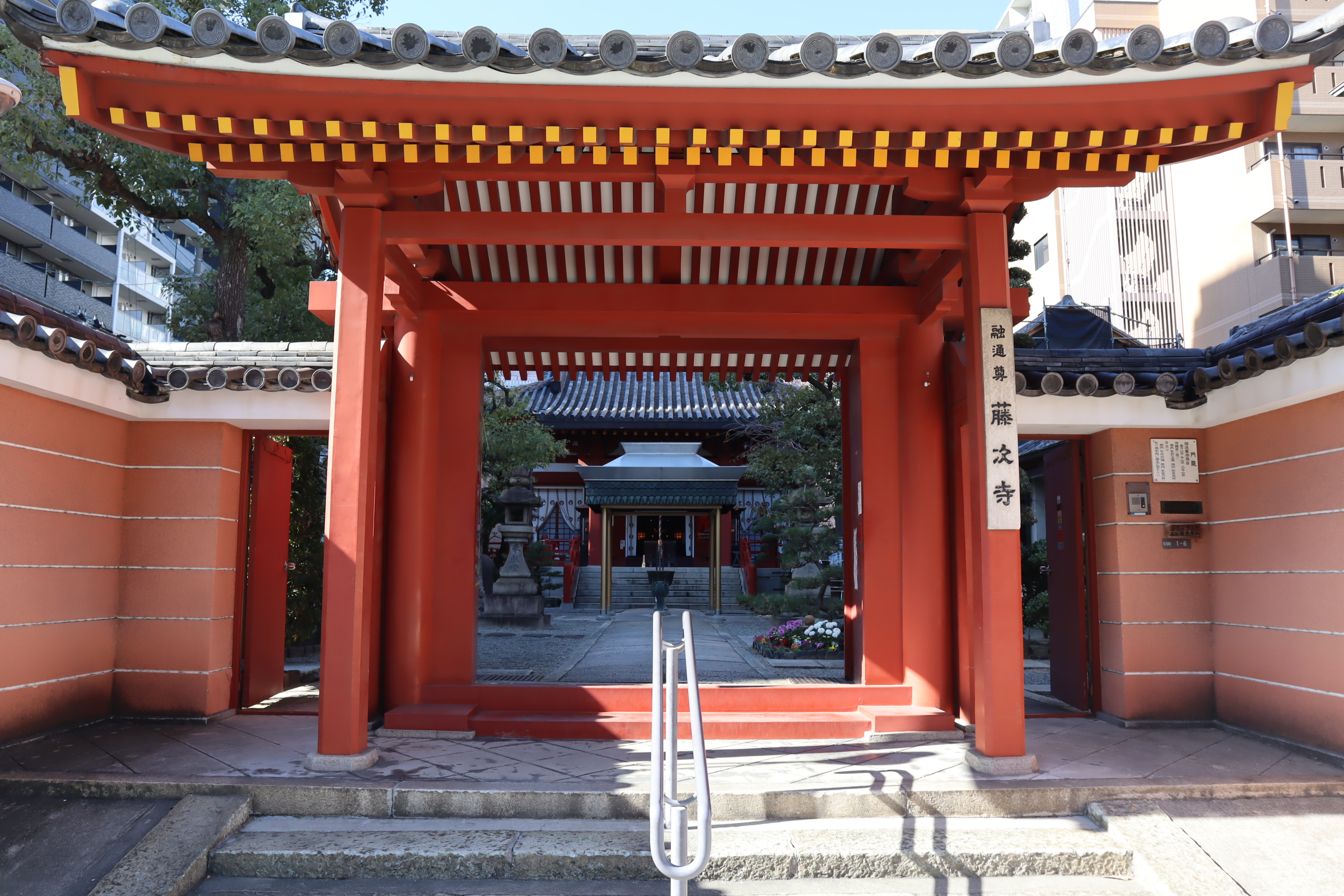 当山は今より約千二百年前の弘人年間(810~824年)に公卿や歌人として知られる藤原冬嗣公の発願により、その甥の任瑞上人を開基として建立されました真言宗の古刹です。建立の趣旨が藤原氏を治める寺である所から藤治寺と称し、代々藤原氏の祈願として栄えてきました。 江戸時代には九条家の祈願寺として幕末にまで至りましたが、明治には生玉十坊中の地蔵院を併合して藤次寺と改称し、「大阪の融通さん」という別称で多くの人々から信仰されて参りました。