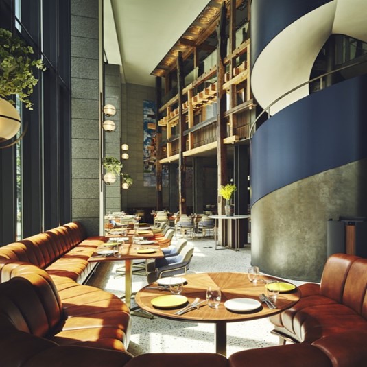 京町堀の街を望む広々とした空間で、友達や大切な人たちと集まり、シェアしながら楽しめる大皿料理を中心にウェスタングリル料理を提供しています。南イタリア・プーリアの豚肉料理と組み合わせたエグゼクティブ・シェフ、アルド・キロイロによるシグネチャーメニュー「“ボンベッテ"トリュフリゾット」や、「“焚火の宴卓” NZ産仔羊のラムラック7種のソース」など、シェフたちのクリエイティブかつ遊び心溢れる料理が楽しめます。オープンキッチンならではの調理音や香りも五感を刺激し、暖かい雰囲気の中で直感的で刺激的なダイニング体験をお楽しみください。