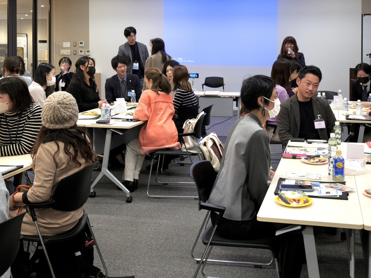 後半は、3名のゲストに加えて、「株式会社匠工房」常務取締役の古川、「テナント工房」営業の越智、「合同会社soraumi」代表の高橋氏、「滋賀県行政書士会」会長の奥野氏、「さの商店」の佐野氏がそれぞれ開業サポーターとして、参加者のテーブルにつき、交流会を実施しました。開業サポーターたちが開業や集客に関する悩みに答えたり、未来の開業者同士が連絡先を交換し合ったり、交友を深める場となりました。