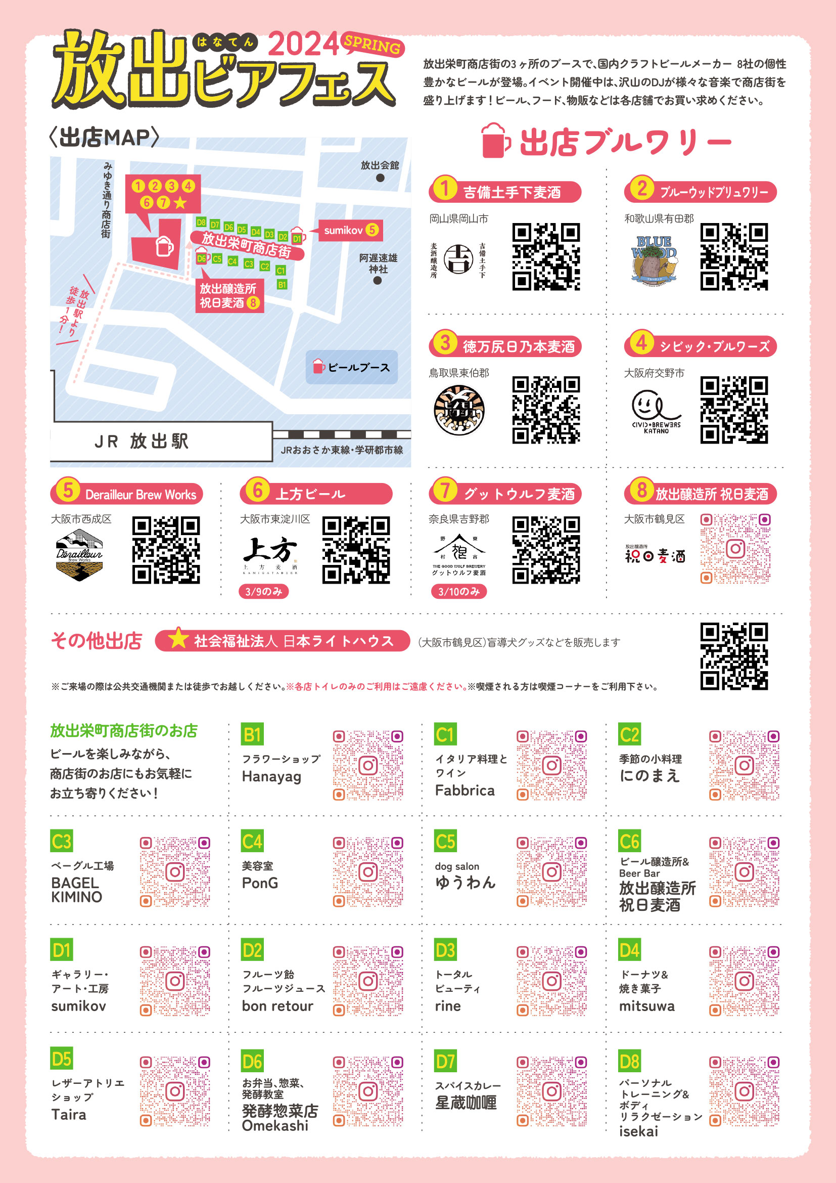 放出駅前の商店街空区画を活用して、国内クラフトビールメーカー8社の個性豊かなビールを楽しんでいただけるイベントを開催いたします。