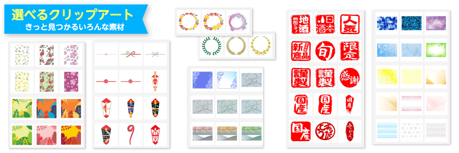 豊富な種類のクリップアートを組み合わたり、ロゴや画像、