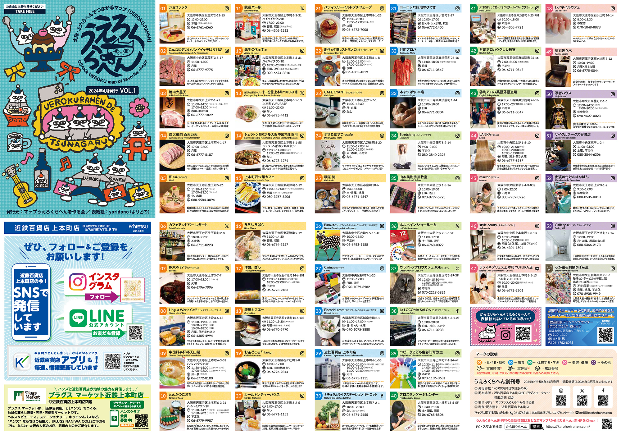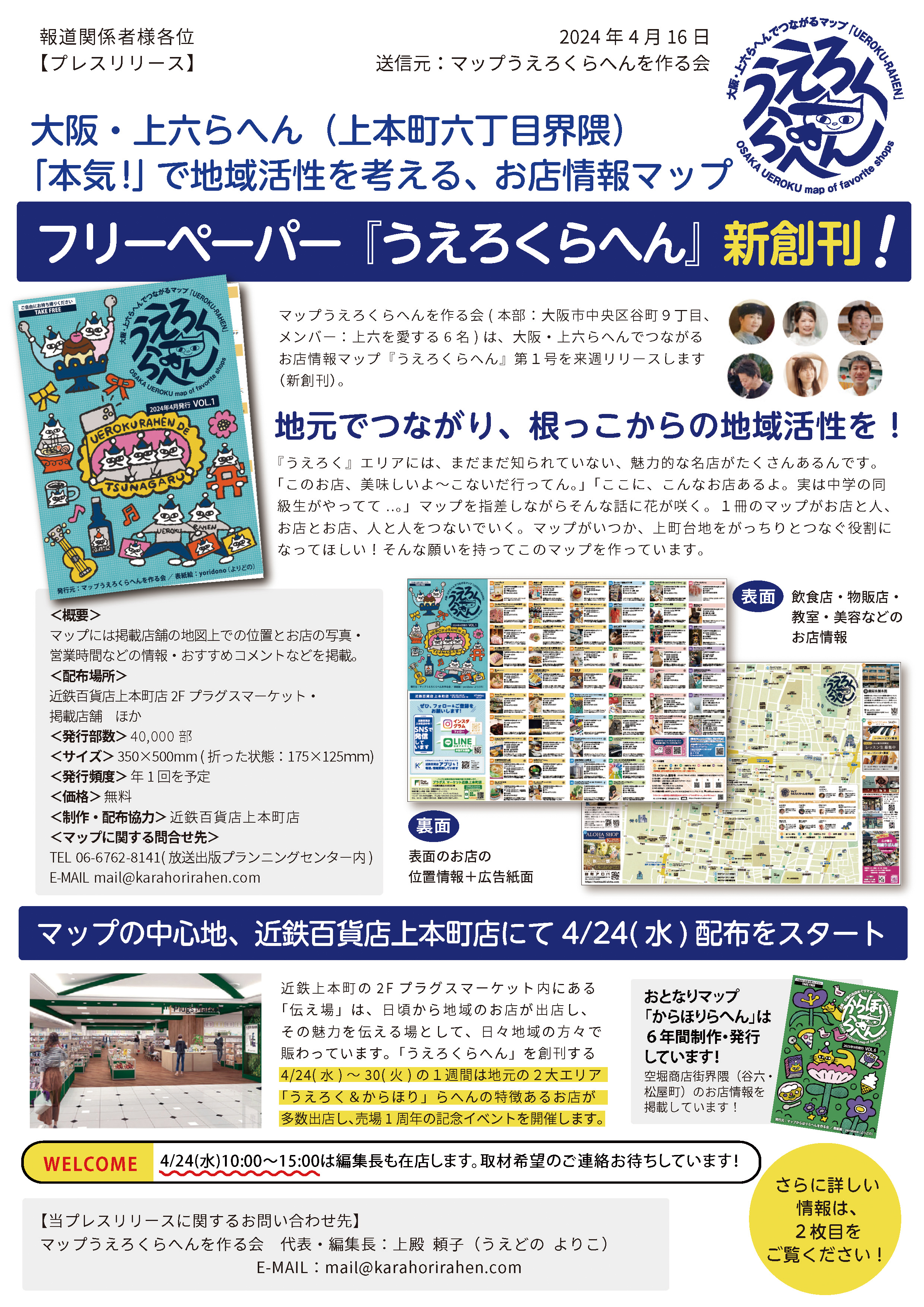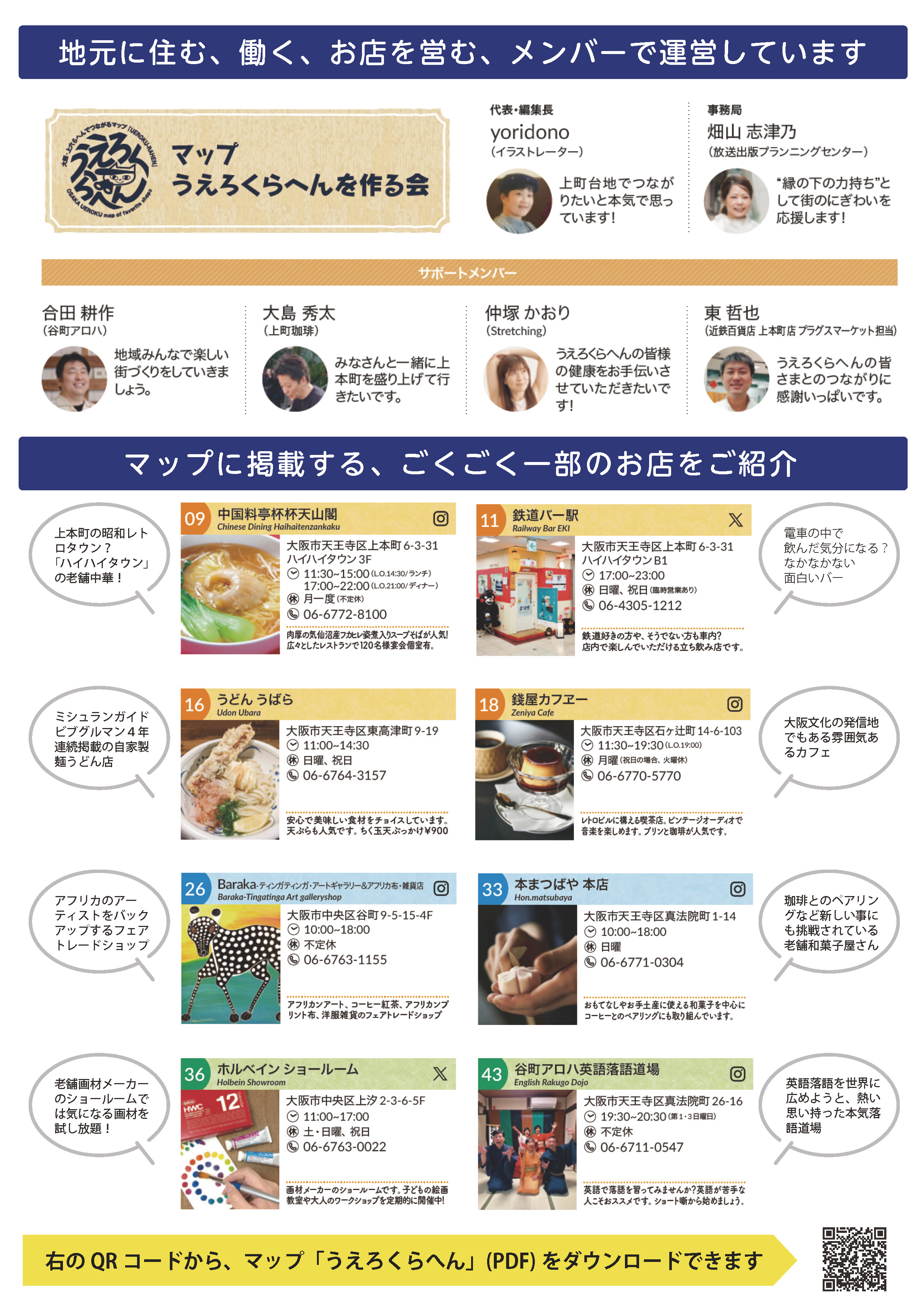 マップうえろくらへんを作る会(本部:大阪市中央区谷町9丁目、メンバー:上六を愛する6名)は、大阪・上六らへんでつながるお店情報マップ『うえろくらへん』第1号を来週リリースします(新創刊)。