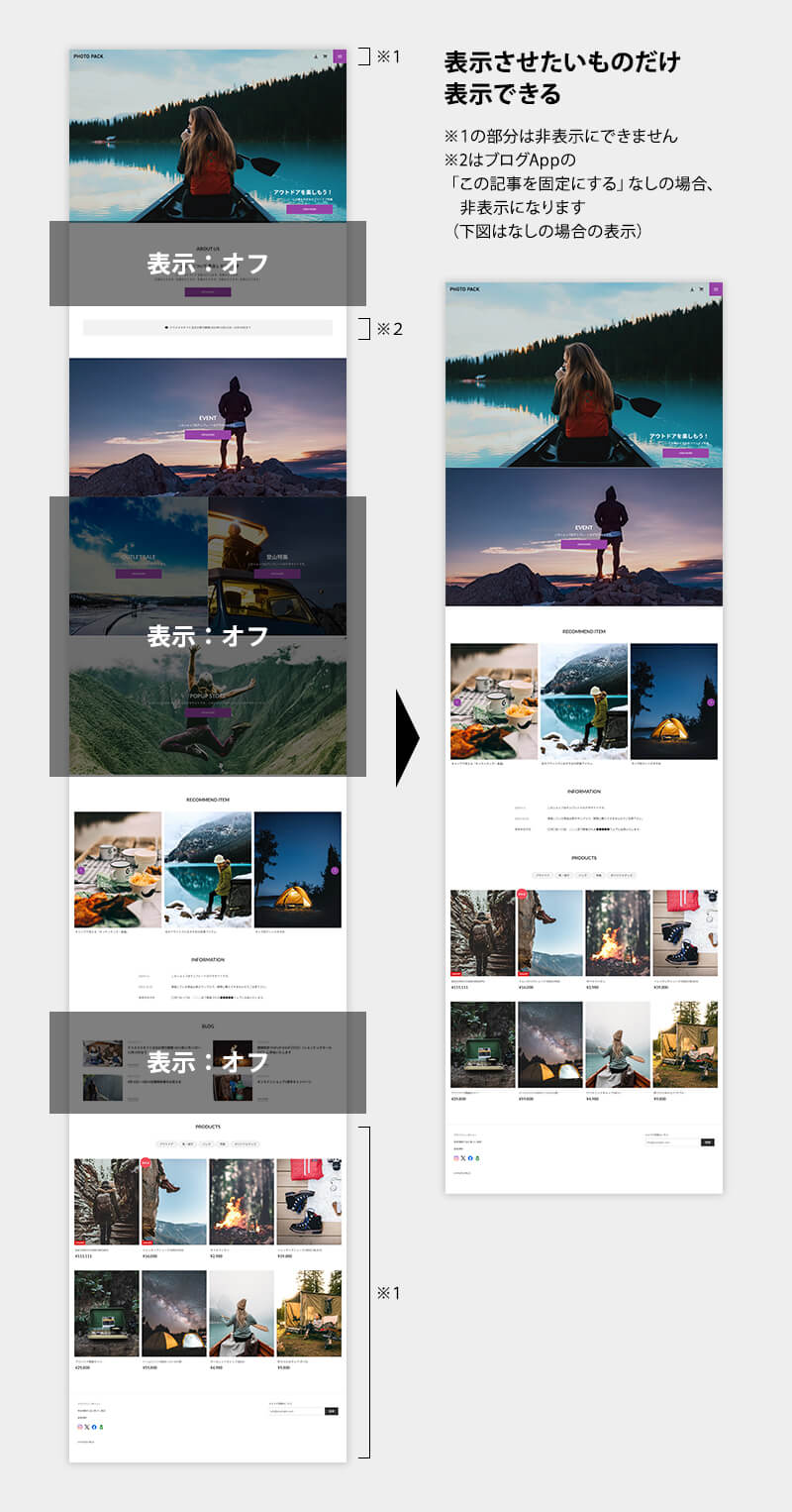 ※1 すべてのコンテンツの表示/非表示を管理画面から設定可能