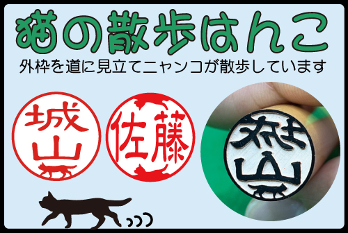株式会社 城山博文堂では、ハンコの外枠を道に見立て、そこを散歩する猫をデザインした「猫の散歩はんこ」を5月27日に発売しました。猫とハグする日(6月4日)を見据えた、猫系デザイナーズ印鑑です。