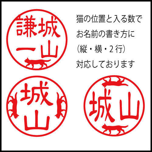 方向を変えることで名前の向き(縦書き・横書き)に対応し、物足りないと感じる方のためには2匹入るパターンで対応しています。
