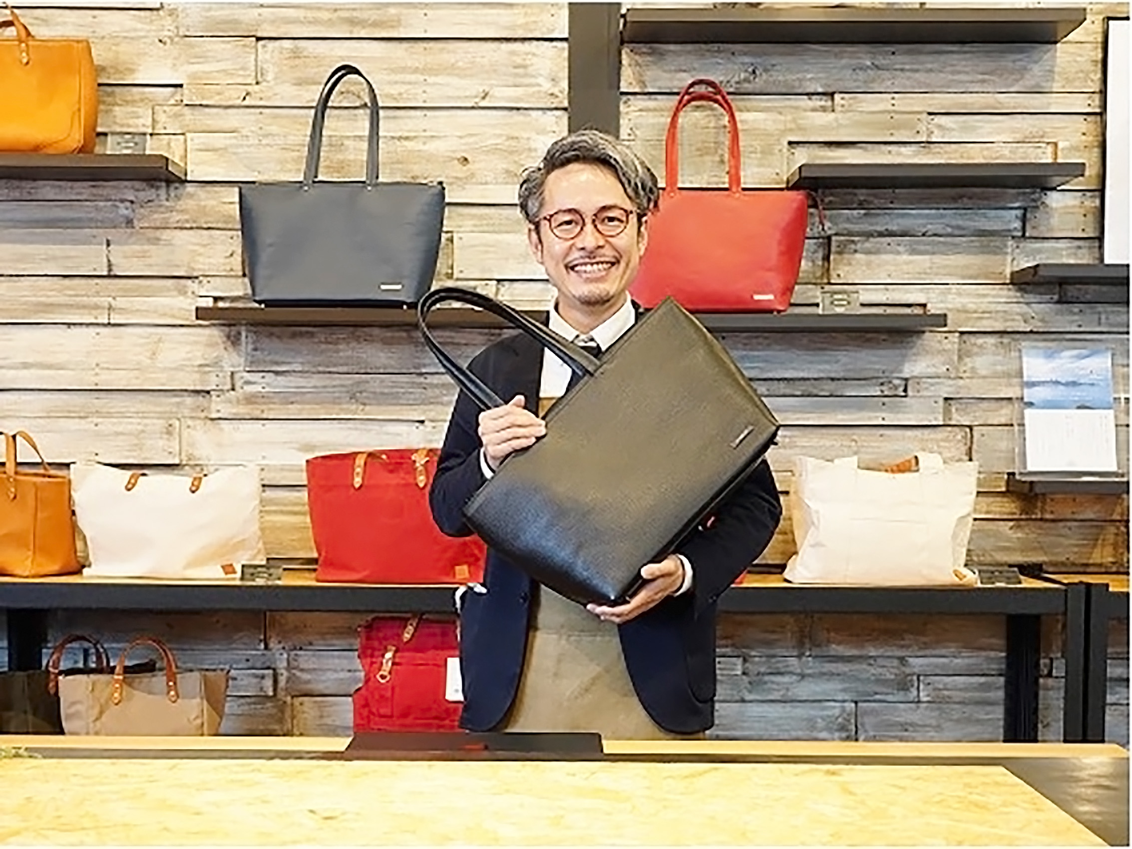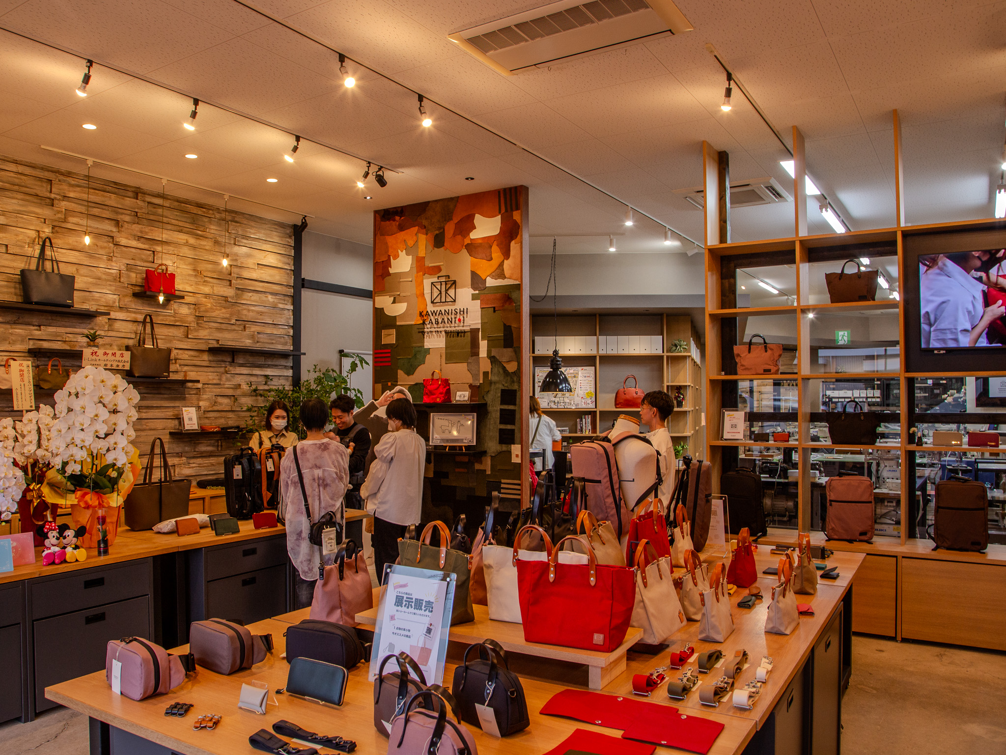 職人が自社工房で手作りする当社の商品。会場にはトートバッグやリュック、財布などの当社の全商品を持参、展示します。会場でECサイトからご購入いただいたお客様にご当地ステッカーを進呈するほか、イベント限定のキーホルダーガチャを設置。香川県の工房ともZoomで中継し、かばん職人たちとの交流も楽しんでいただくことができます。