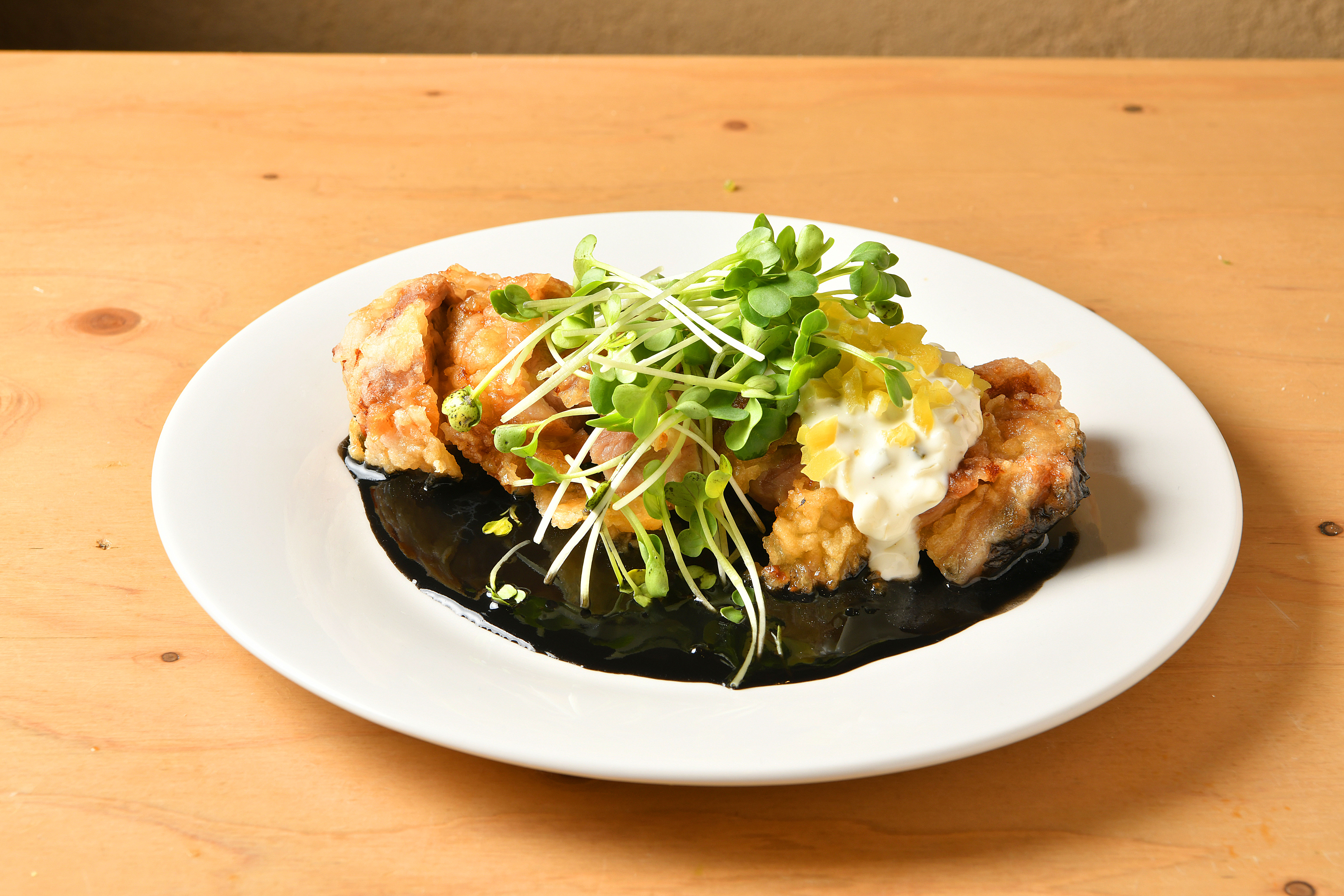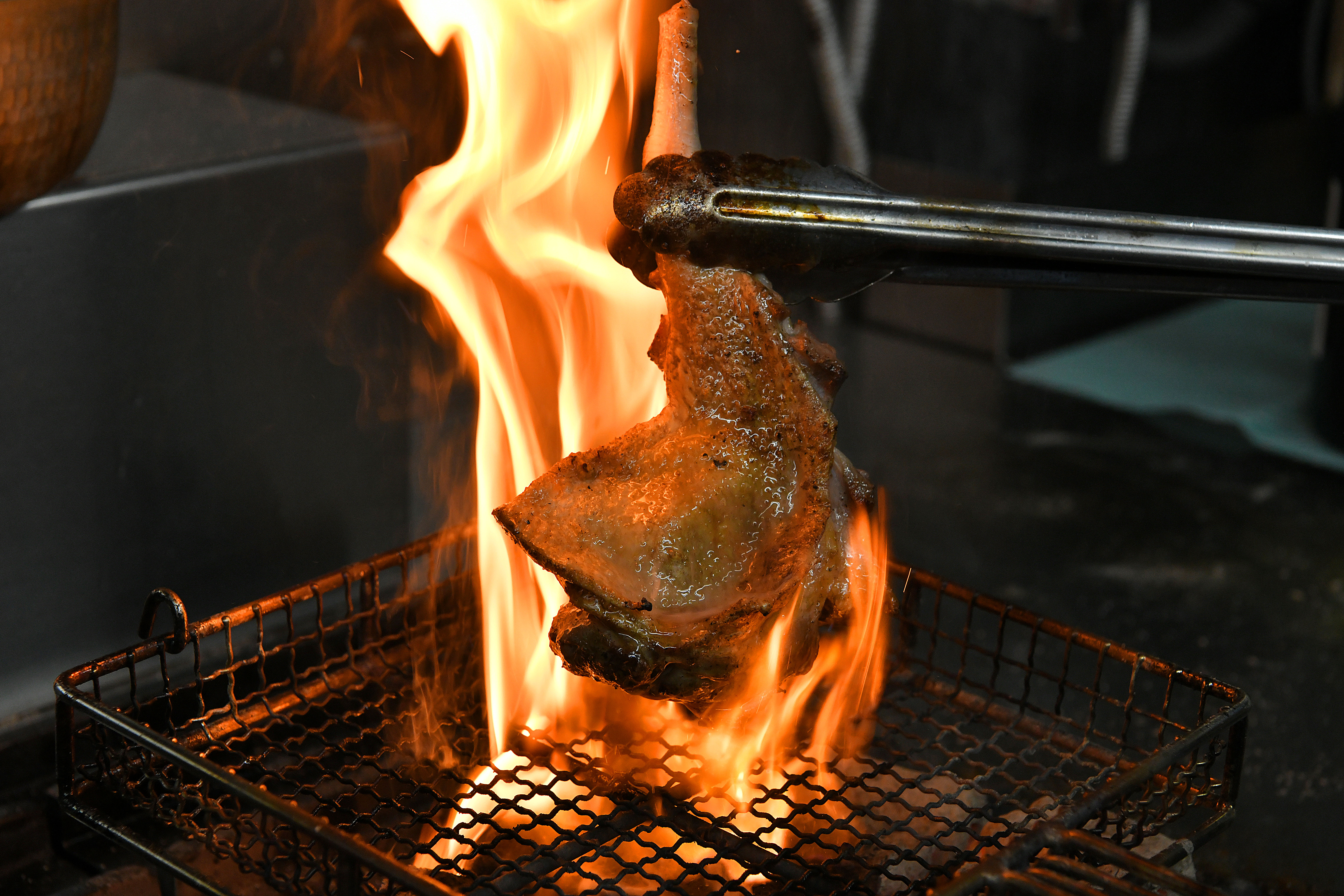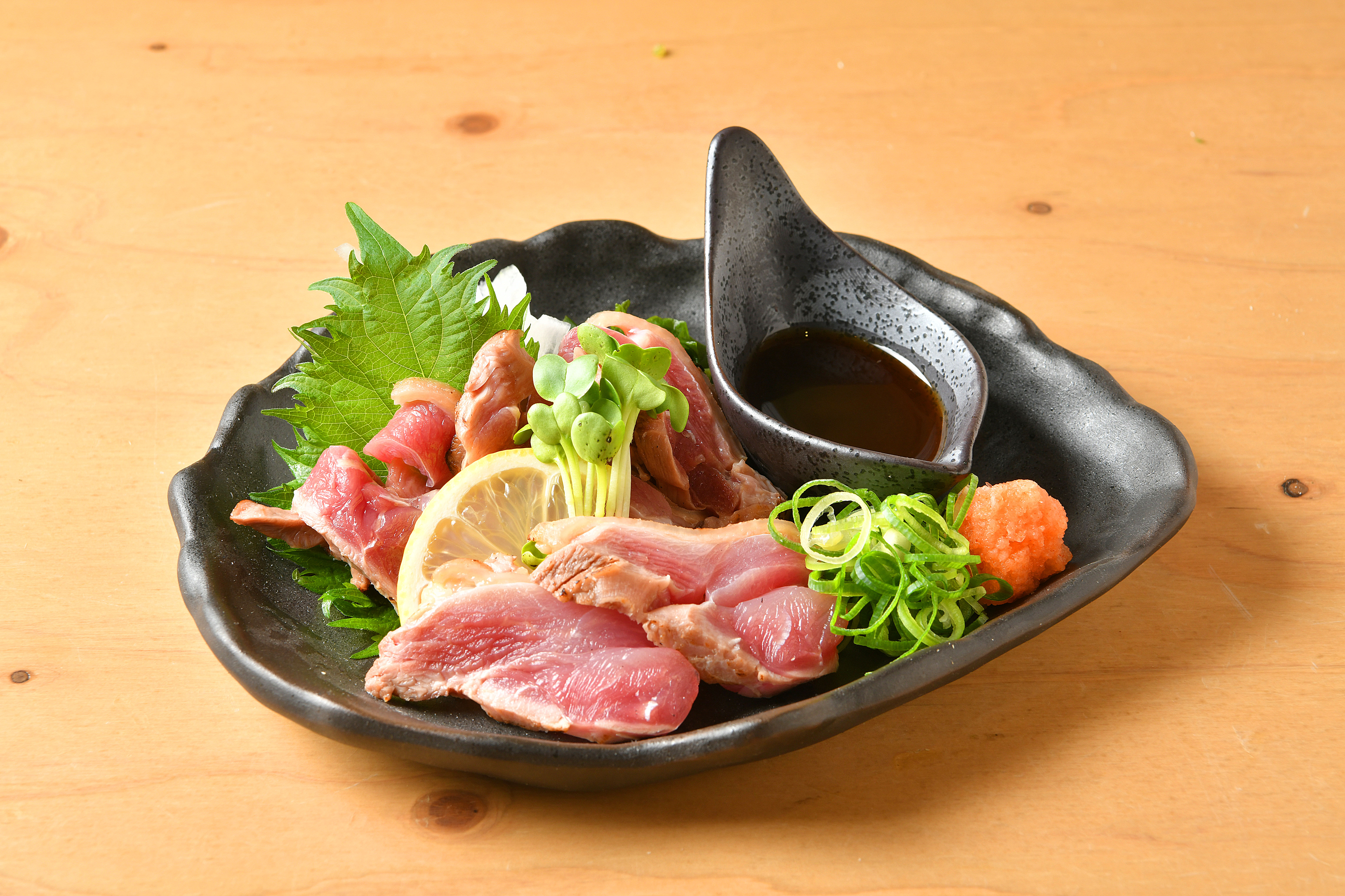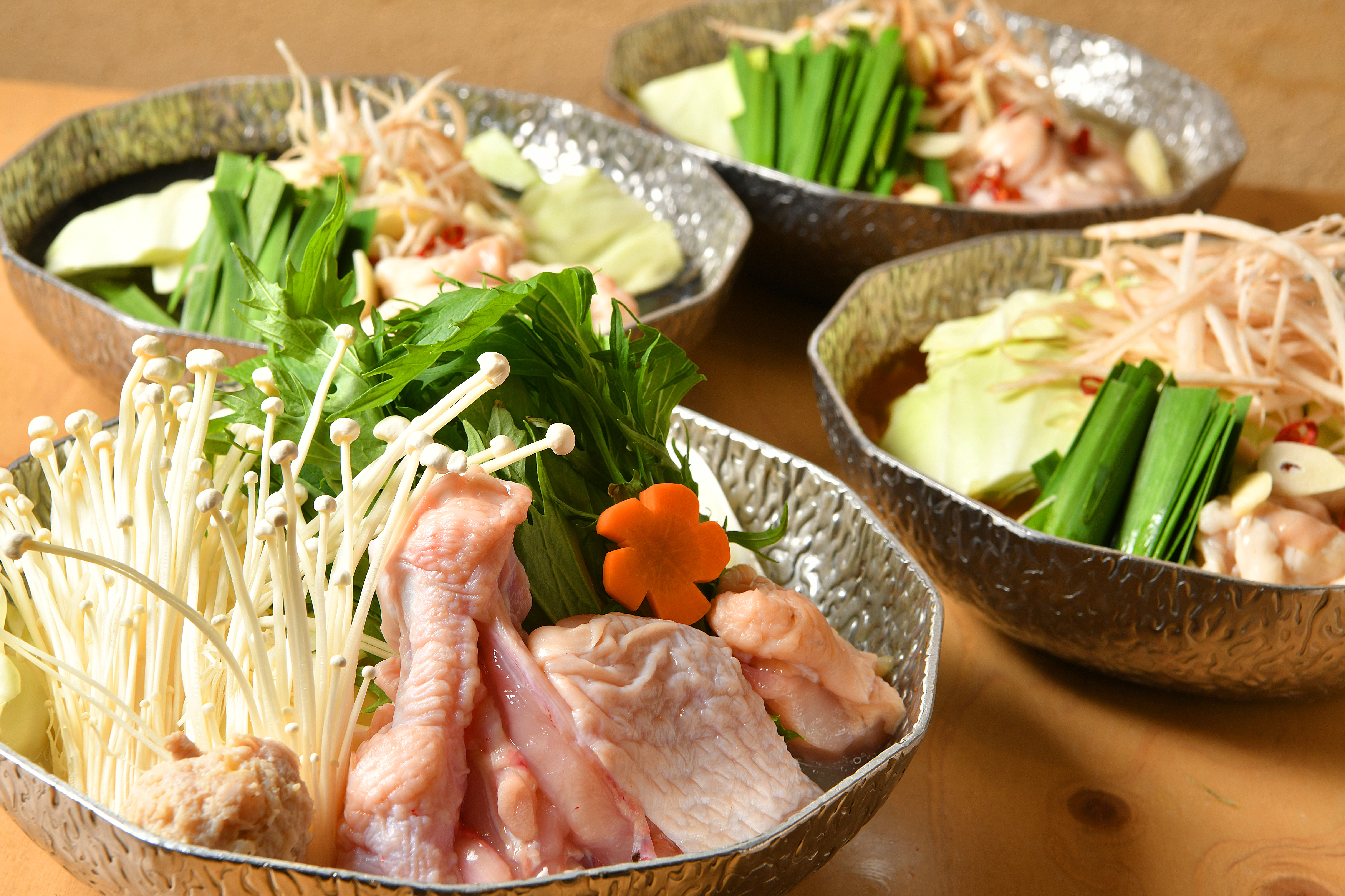 なかでも当店名物の骨付き鳥は、嚙むごとに旨味溢れる肉質が特徴の“知覧鶏”を使用。鶏のもも肉を丸ごと1本、土佐備長炭で豪快に焼き上げ、自家製のゆず胡椒やおろしポン酢を添えてご提供致します。さらに、博多名物の高菜明太を使用したポテトサラダや肴、鳥水炊きや4種の出汁から選べるもつ鍋など、博多の魅力溢れる定番メニューを豊富にご用意致します。