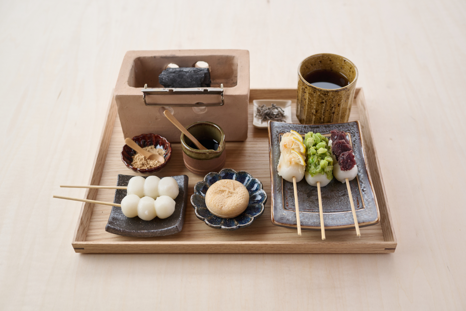 お好きな串はらい団子3個と団子焼き体験ができるセット