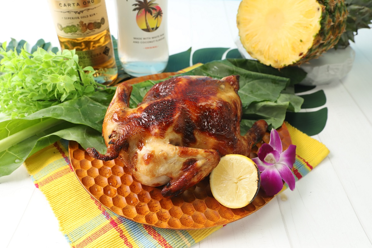 醤油やケチャップ等でつくる特製マリネ液に漬け込んだ丸鶏をじっくりグリル