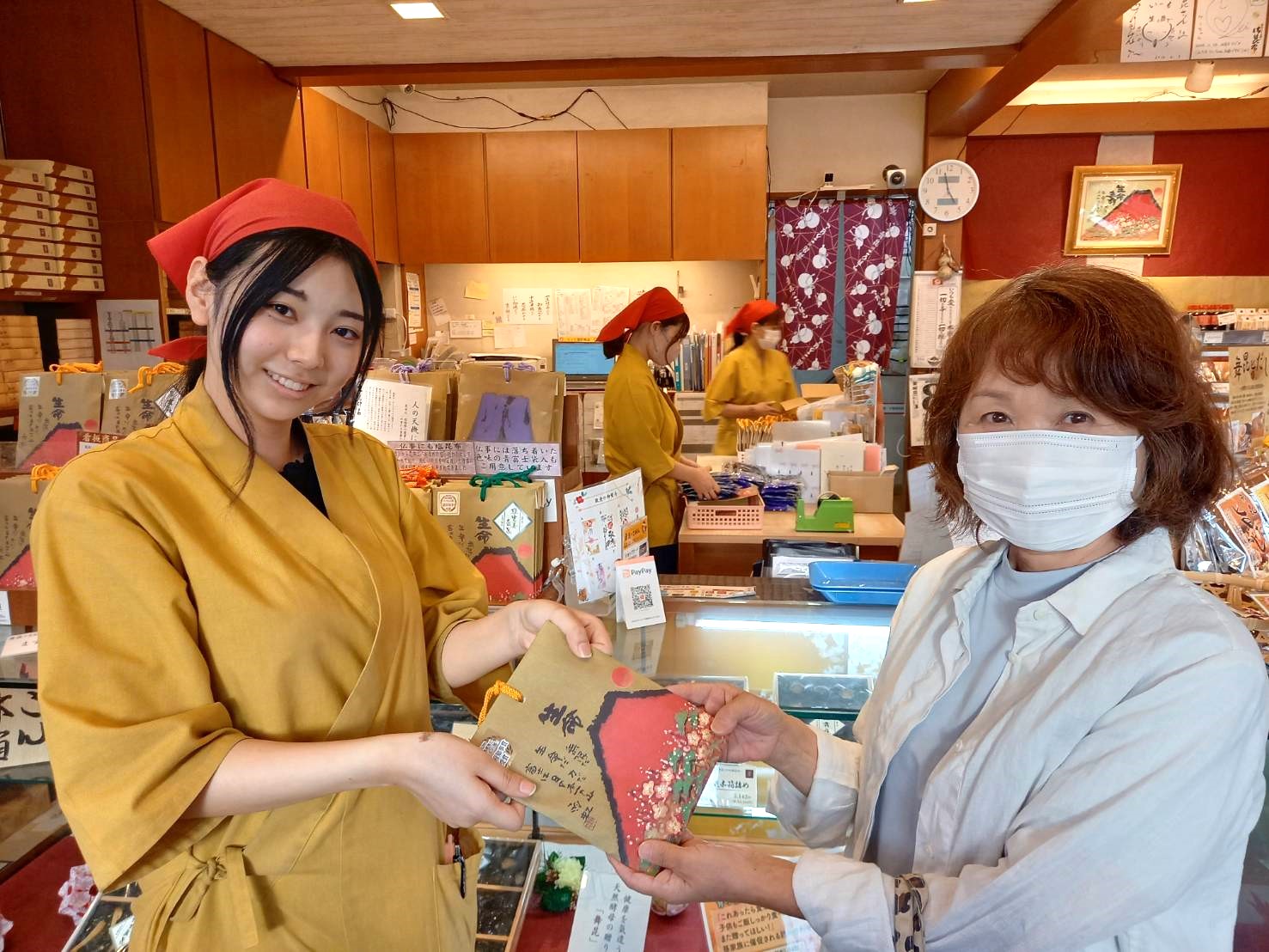 101歳の場合:「たもぎ茸舞昆」=無料、「舞昆ポイントカード」(作成無料)1ポイント付与