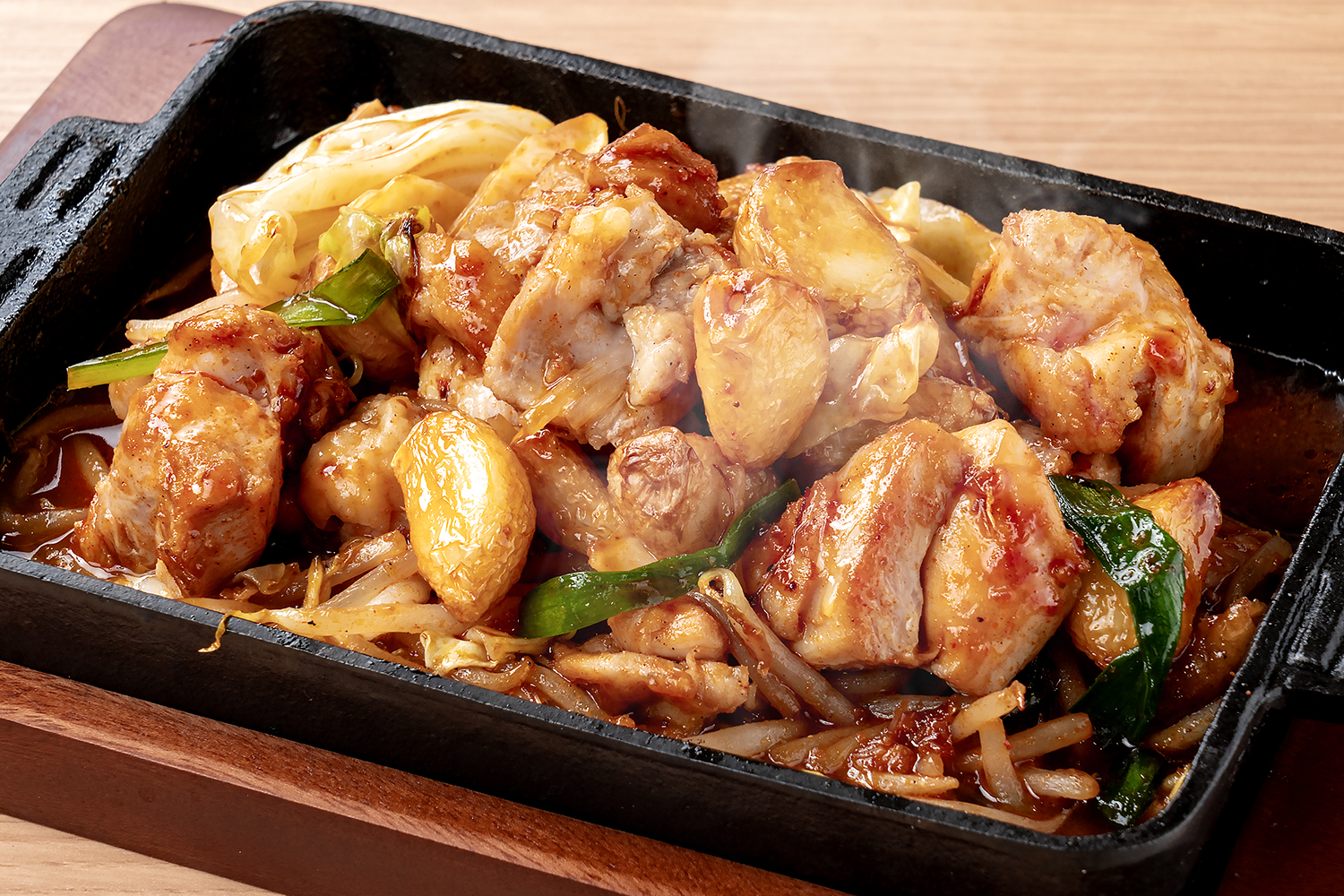 鉄板スタミナ焼き ごちゃ盛り 白・黒(各890円)