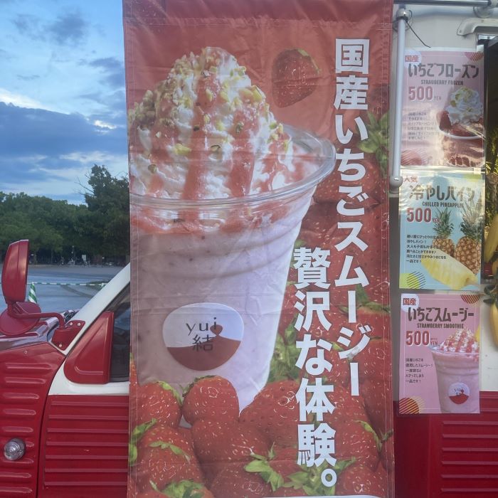 大阪市住吉区にある長居公園で開催された第2回「スタぼん」イベントにおいて、女性が創るキッチンカー「結-yui-」が出店しました。提供した特製いちごスムージーが大盛況を収め、来場者から多くの絶賛の声をいただきました。