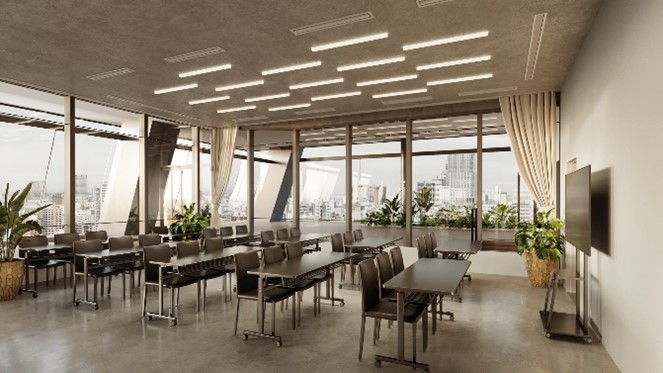 スクール形式で約30名様がご利用可能な展望会議室です。ガラス張りで開放的なスペースは、大阪の広大な景色を一望しながら会議を行うことができるため、新たなアイデアを創出したり、様々な意見を活発に交わすことができる場所になるでしょう。