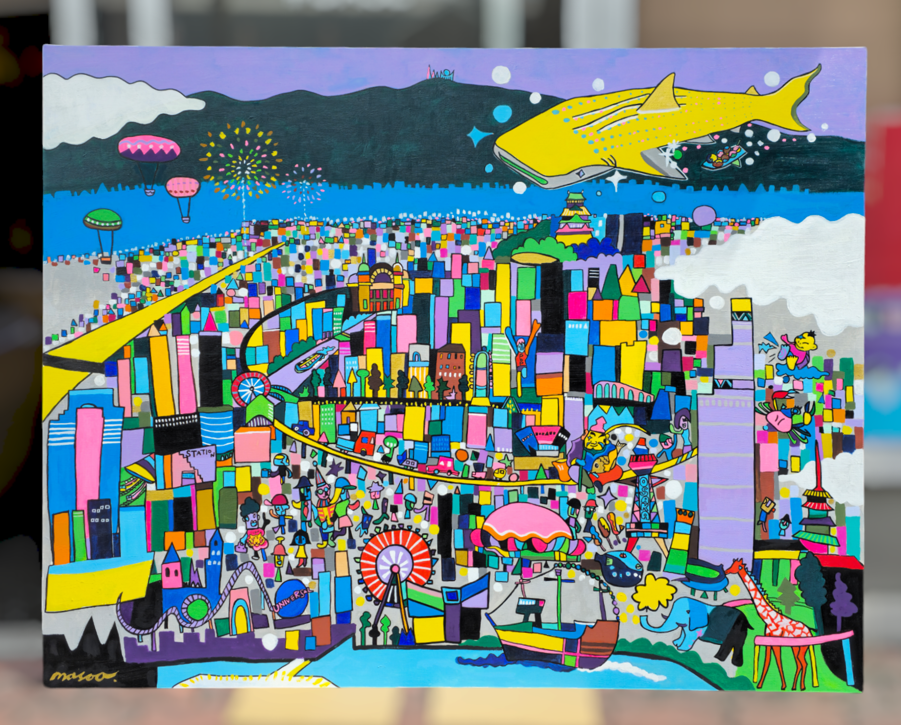 8年前大阪市主催の大阪MICEでお披露目した100号キャンバスの大型作品「NEW OSAKA八百八楽」、