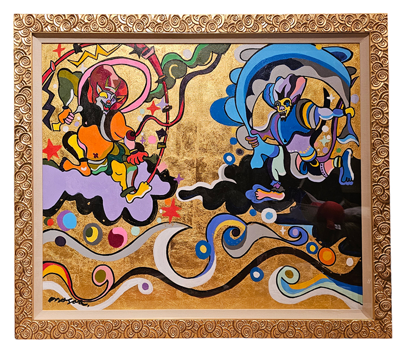 24金の金箔を50枚以上使用して制作される金箔シリーズの新作「笑う金の風神雷神」、