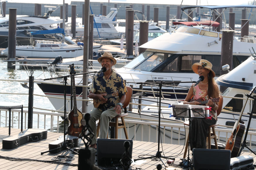今年8月に実施したミュージックイベント「北港ミュージックブリーズ2024」。 ハワイアンテイストあふれるアーティストのライブは週末の北港を彩り、大好評を博しました。 今年第2回目となる9月の公演タイトルは「北港ミュージックブリーズAUTUMN」。 ハワイアンを彷彿とさせるマリーナの景色、自然にふさわしい音楽を奏でるアーティストによるライブを開催します。