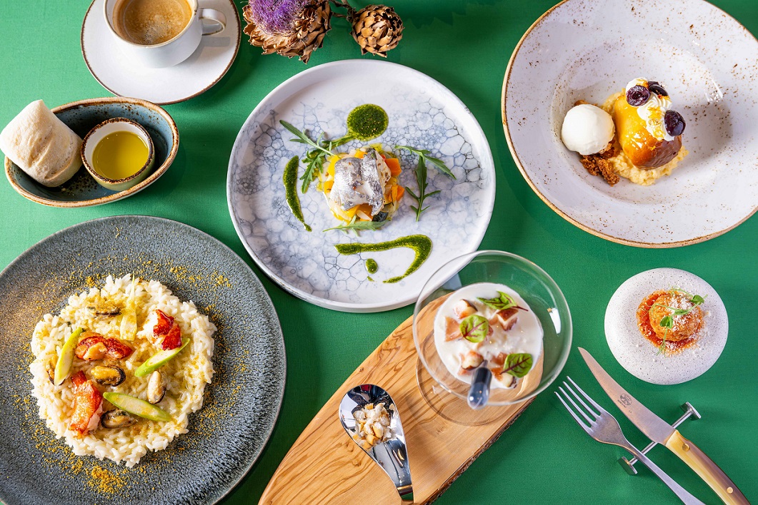 ランチではイタリア料理をメインに約40種類をお楽しみいただけるブッフェ、ディナーではオーセンティックなイタリア料理が楽しめる“トラディショナル”、和の食材・技法とイタリア料理をかけ合わせた“フュージョン”、カクテルを含むドリンクのフリーフロー付きの“カジュアル”のコース3種類をご提供いたします。