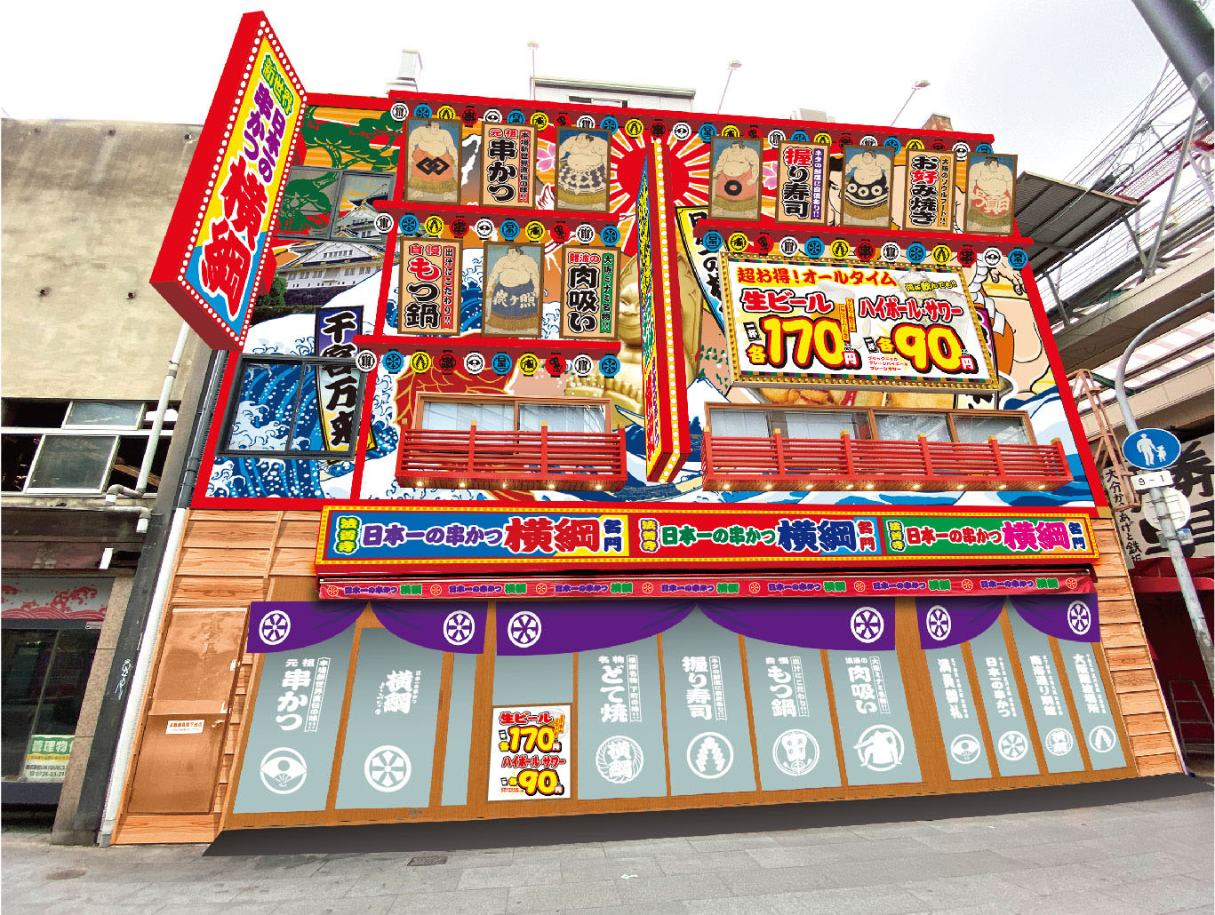 大阪・難波エリアに「日本一の串かつ 横綱 難波南海通り別館」(住所:大阪市中央区難波3-1-19)