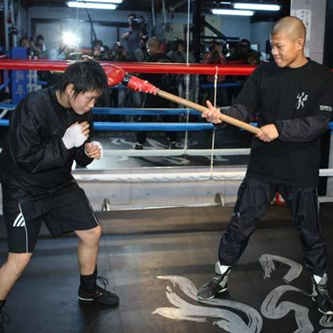 自分の避ける能力を是非試しながら、プロのボクシング選手の体験ができます。