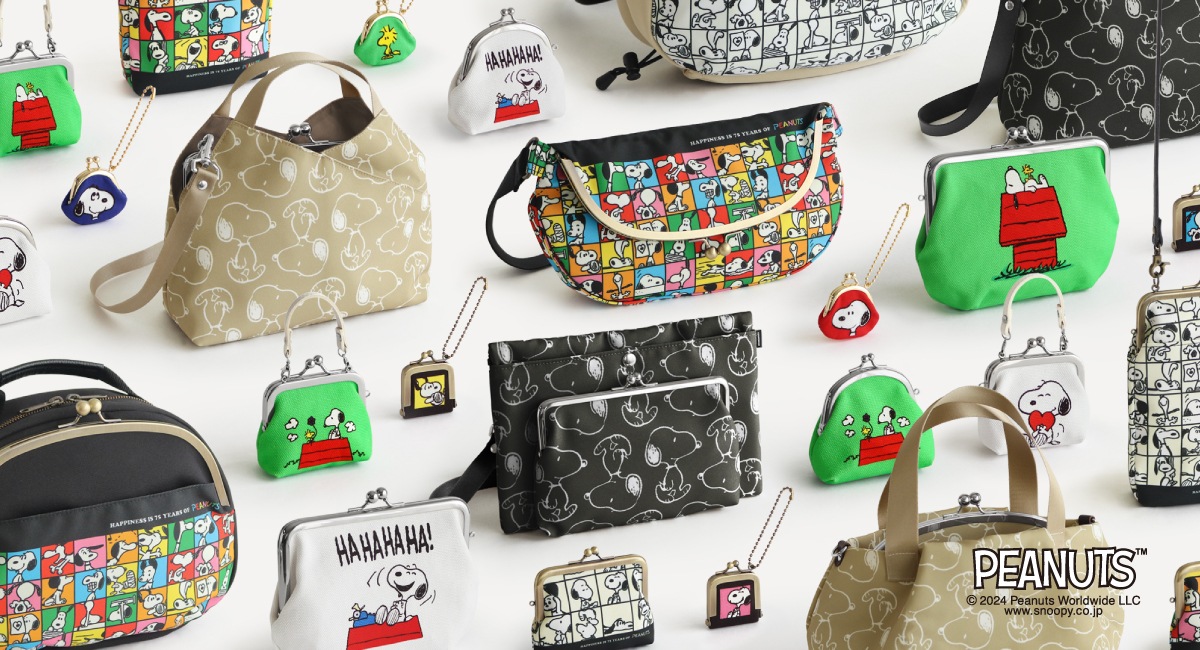 秀和株式会社(所在地:京都府京都市 代表取締役 奥敏郎)が運営する、京都の職人が手作りするがま口の専門店「AYANOKOJI」は、2025年10月2日にコミック誕生75周年を迎える「PEANUTS」に登場するスヌーピーとウッドストックをあしらったアイテムを展開。75周年記念アートをもとにしたシリーズをはじめ、AYANOKOJIとAYANOKOJI Sareiから全3シリーズ・12アイテムを2024年10月2日(水)よりAYANOKOJIの全国の直営店およびAYANOKOJIオンラインショップ本店にて、2024年10月9日(水)よりAYANOKOJI楽天市場店にて販売いたします。