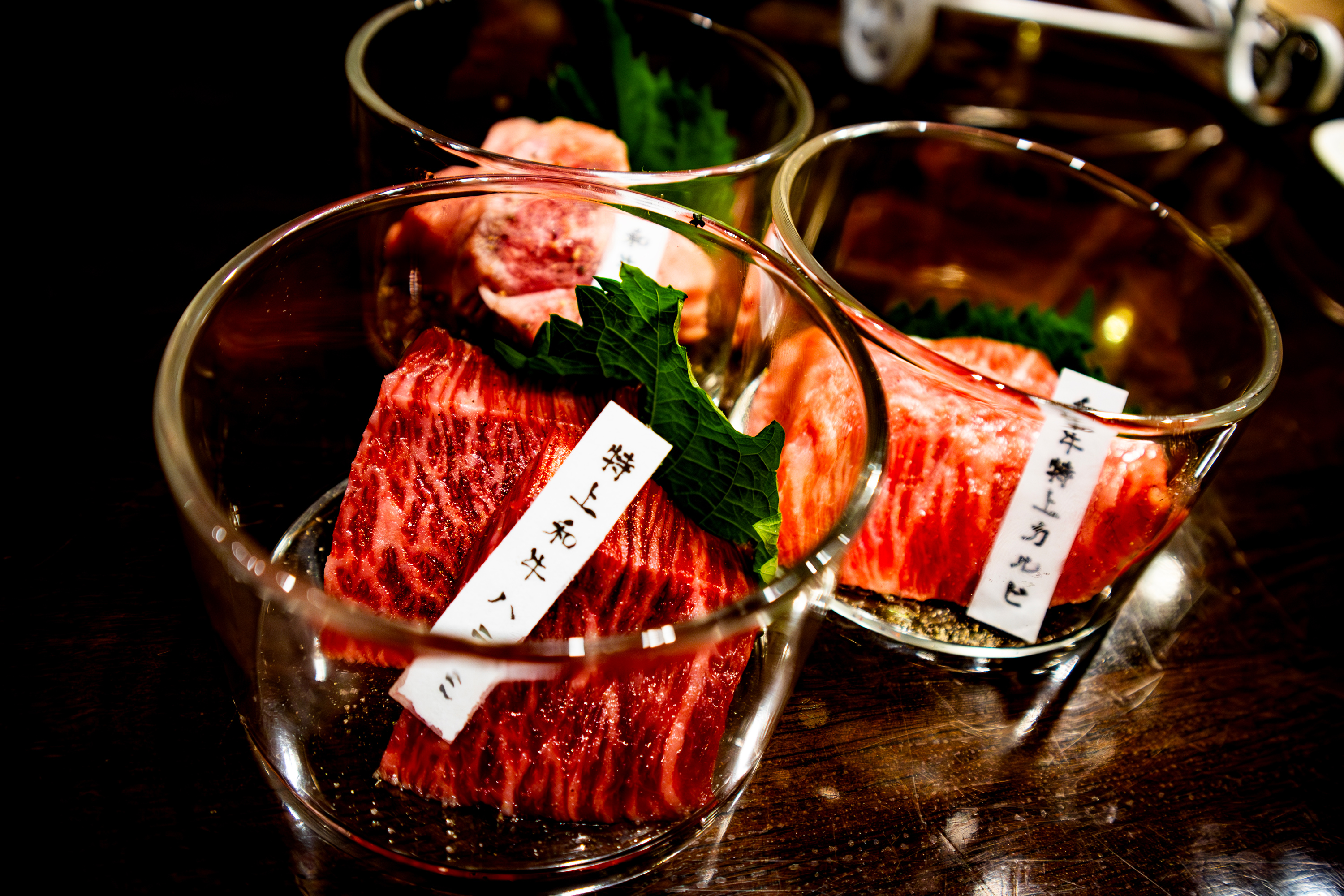 ロース、カルビ、赤身の特上のものがメインになってきます。薄切り、厚切りなども入れてカットの違いも楽しんで貰える仕様にしております!サシがしっかり入ったお肉だけでなくて、赤身のお肉も入れてるので、バランスよく楽しんでもらえます。2切れずつなのでデートでのシェアに最適です。