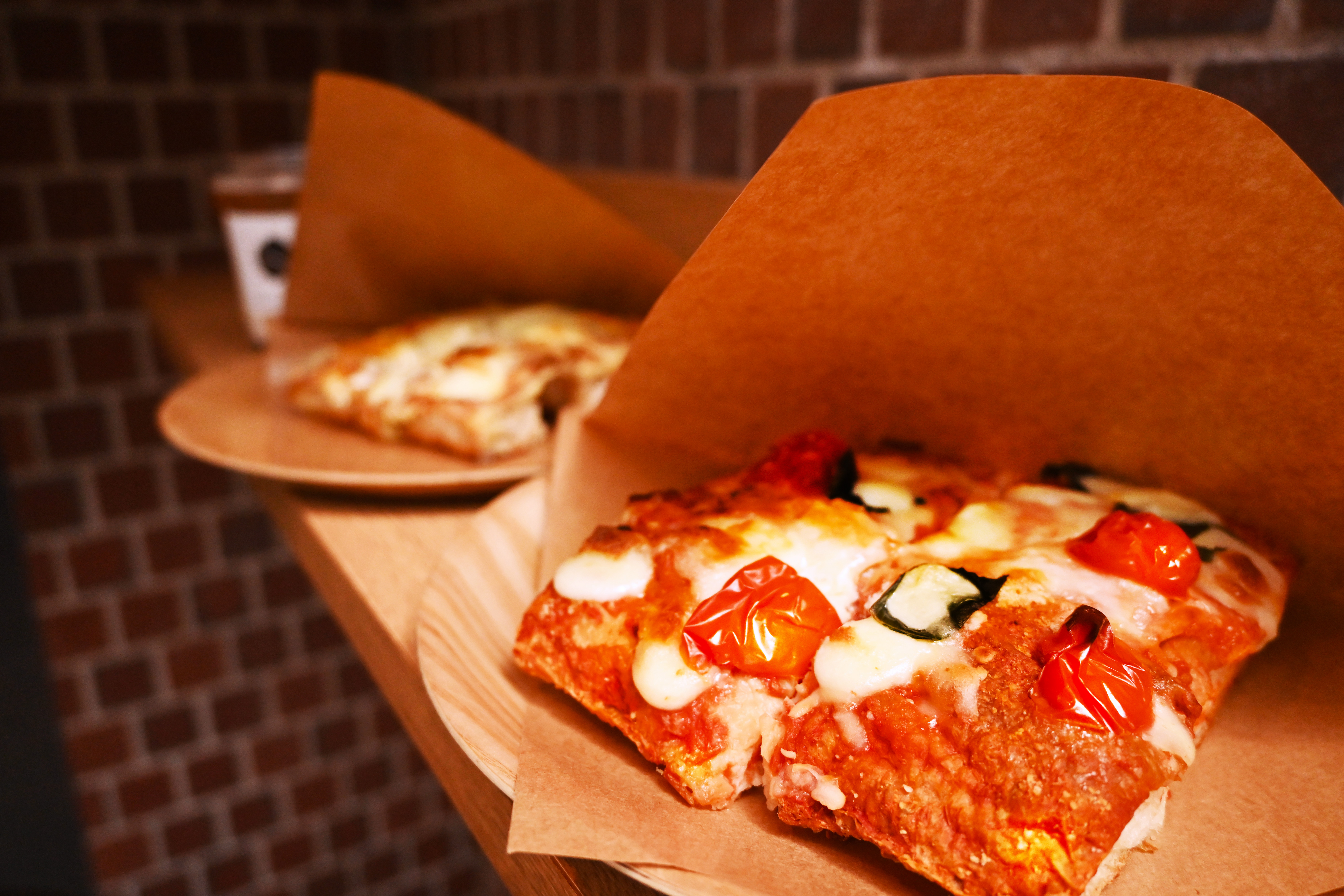 コク深いコーヒーと相性抜群、素材にこだわったローマタイプの切り売りピザ。
