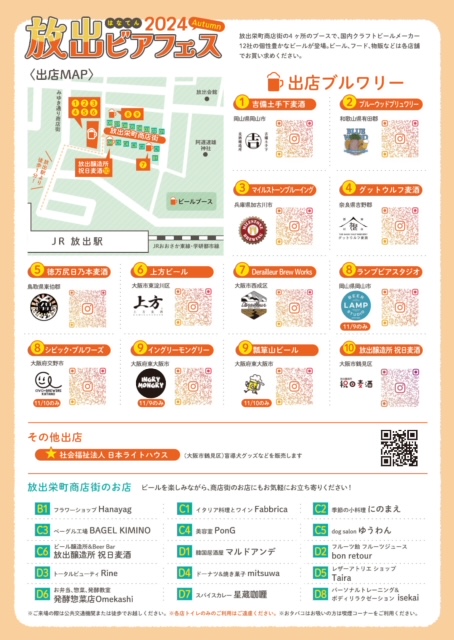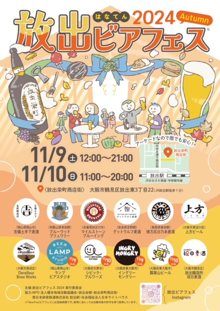 放出駅前のシャッター商店街を活用して、国内クラフトビールメーカー12社の個性豊かなビールを楽しんでいただけるイベントを開催いたします。放出栄町商店街は、駅前にありながら長きに渡って廃墟化しておりましたが、4年前より徐々に店舗の出店があり、少しずつ賑わい始めています。当日は約50種類のクラフトビールと、商店街の一部の飲食店や食物販店がイベント用メニューを用意しているほか、音楽ライブイベントも開催いたします。全国で社会問題化しているシャッター街の再興を目指して、本イベント等を通じて変化が起き始めている放出栄町商店街を知っていただくいい機会と捉えています。