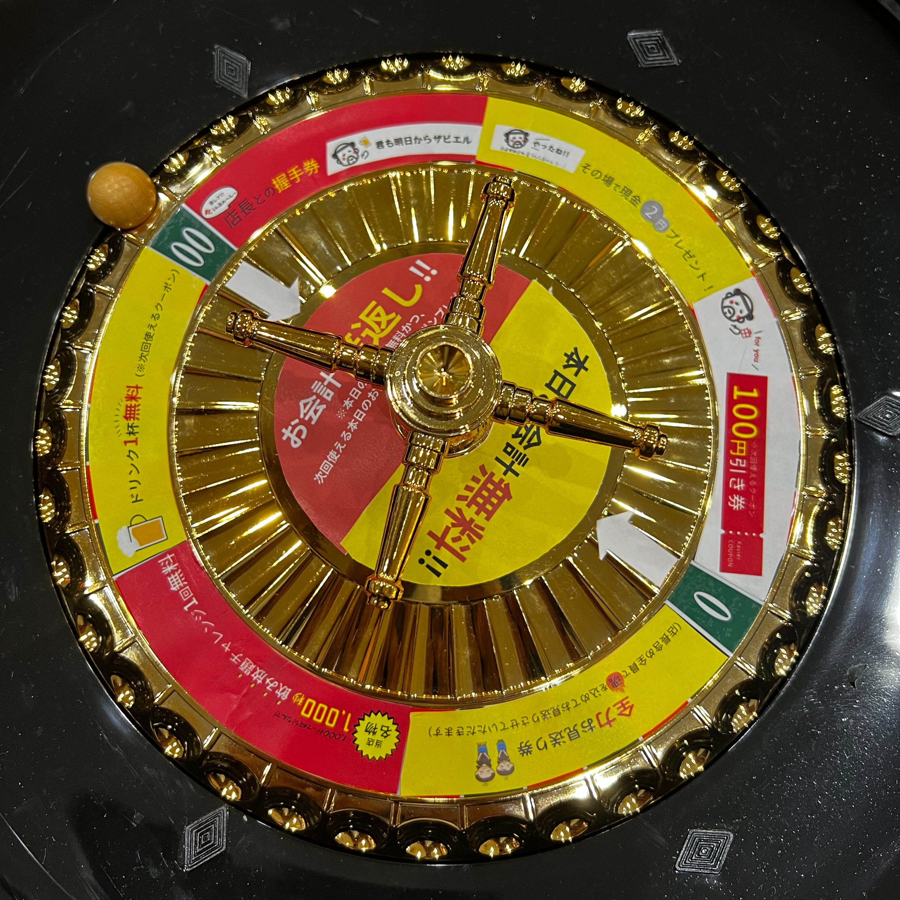 2030年秋ごろ、大阪・夢洲に開業を予定する「大阪IR」(カジノを含む統合型リゾート)。当店では「大阪IR」の開業に先駆け、代表的なカジノゲームで用いられる「ルーレット」を使い、球が「00」に入ればその日のお食事代が無料になり、さらに次回使えるお会計分のクーポンをプレゼントするイベント「倍返しルーレット」を開催します。回転する円盤に球を投げて、どこに落ちるかを予想するゲーム「ルーレット」は、“カジノの女王”とも呼ばれ、世界各国のカジノで楽しまれています。地元のお客さまが集う当店で予行練習してもらい、日本初のカジノを含む統合型リゾートとなる“大阪IR”を開業時に最大限楽しんでもらおうと企画しました。