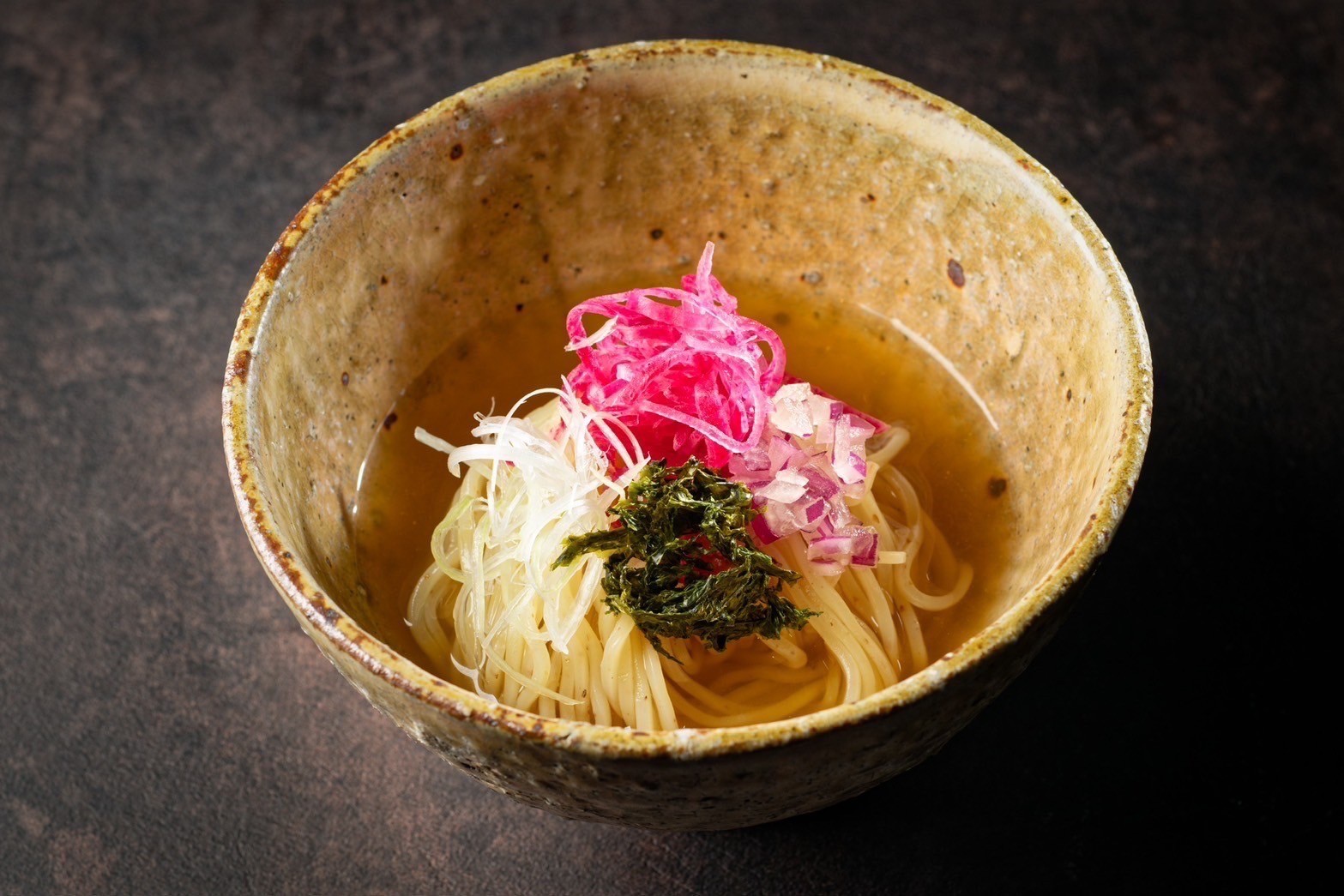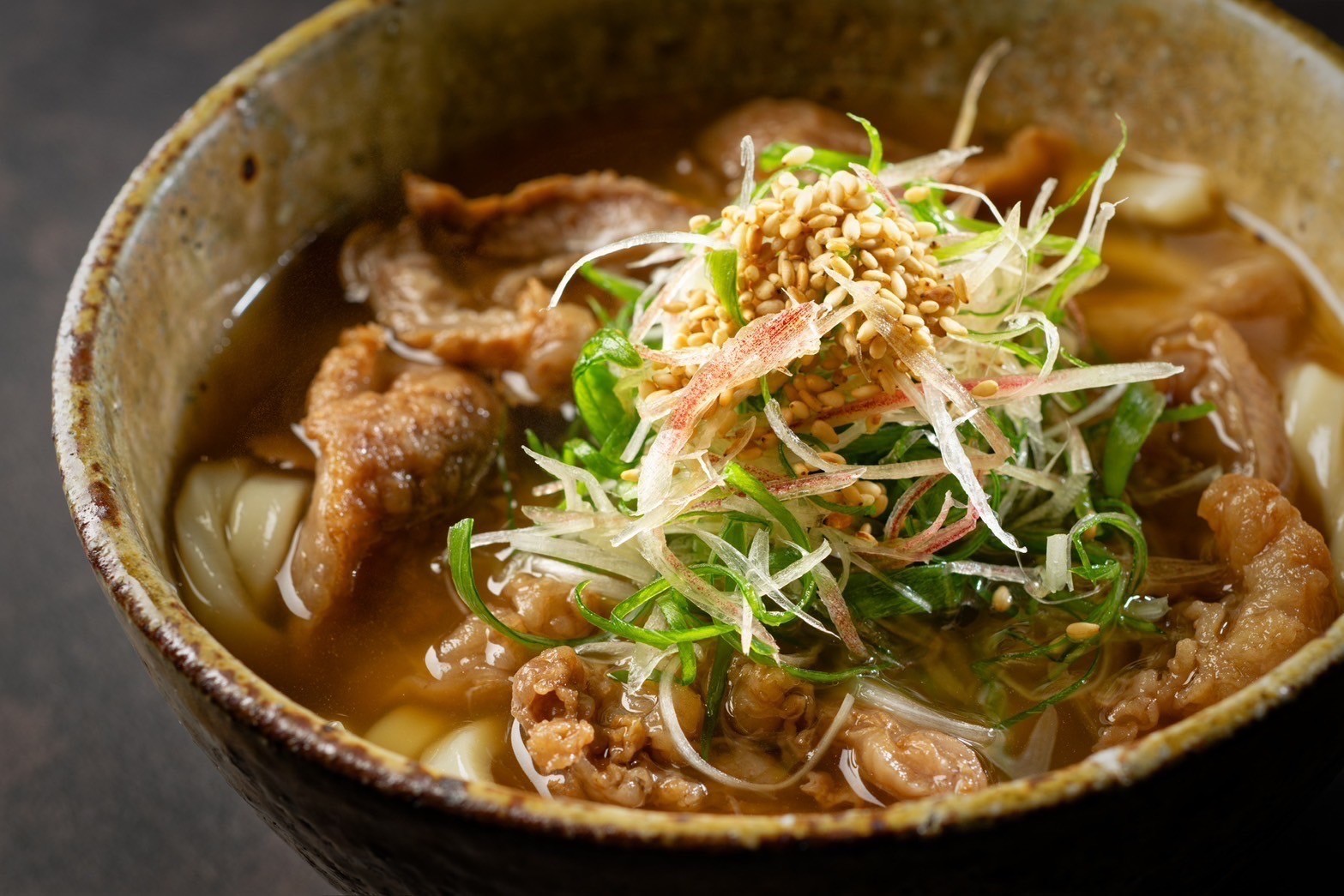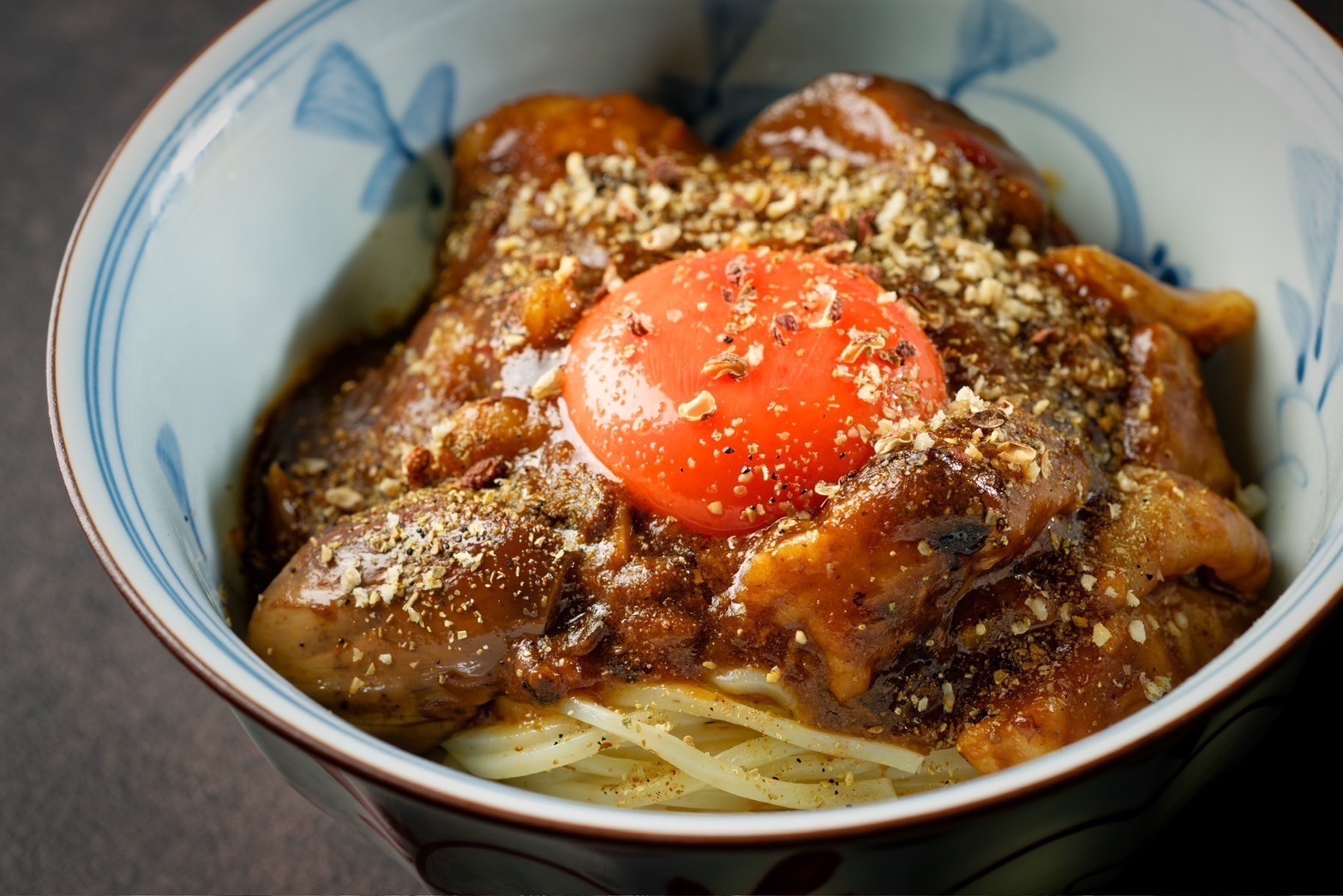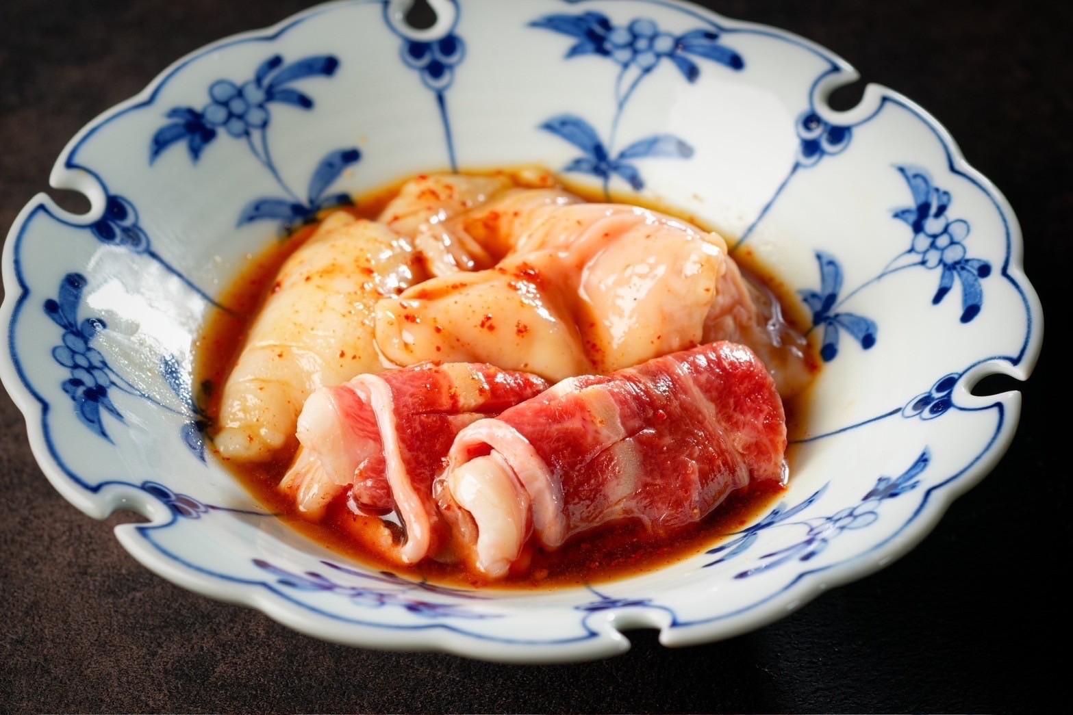 焼肉のほか、〆の麺料理も3種類ラインナップしています。〆の定番の「冷麺」は、全粒粉の小麦麺に牛スープと魚介スープを合わせたあっさりとしただしで冷やしラーメンのように仕上げました。「和牛まーぼー麺」は、和牛の小腸の甘みと花椒の痺れがクセになる麻婆をかけた汁なし麺です。「肉うどん」は、和牛の旨味がだしに染み出した贅沢な一品です。