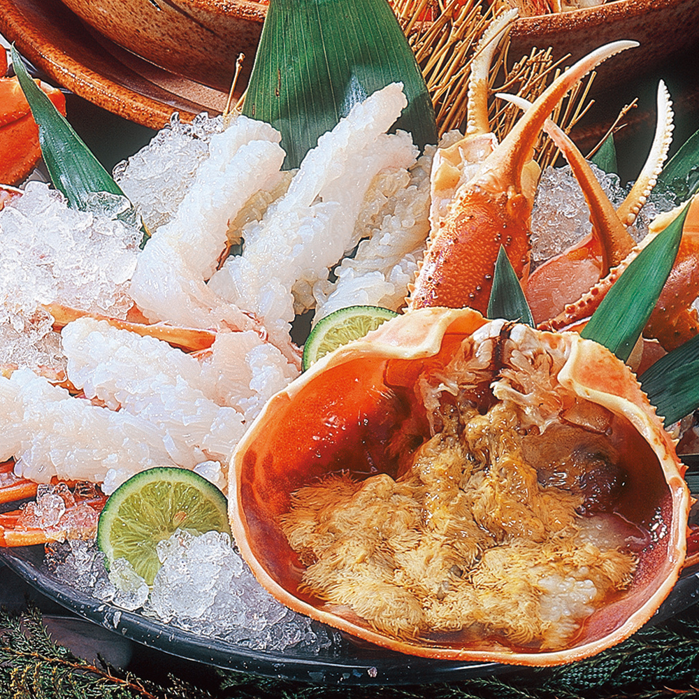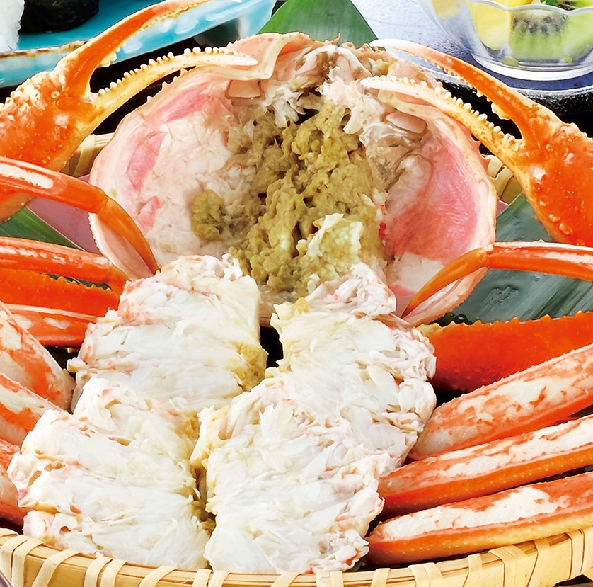 松葉かに(3月20日まで)、背子かに(12月中)と漁期が決まっており、期間限定の特別コースとなります。漁にも限りがある為、必ずご予約下さいませ。