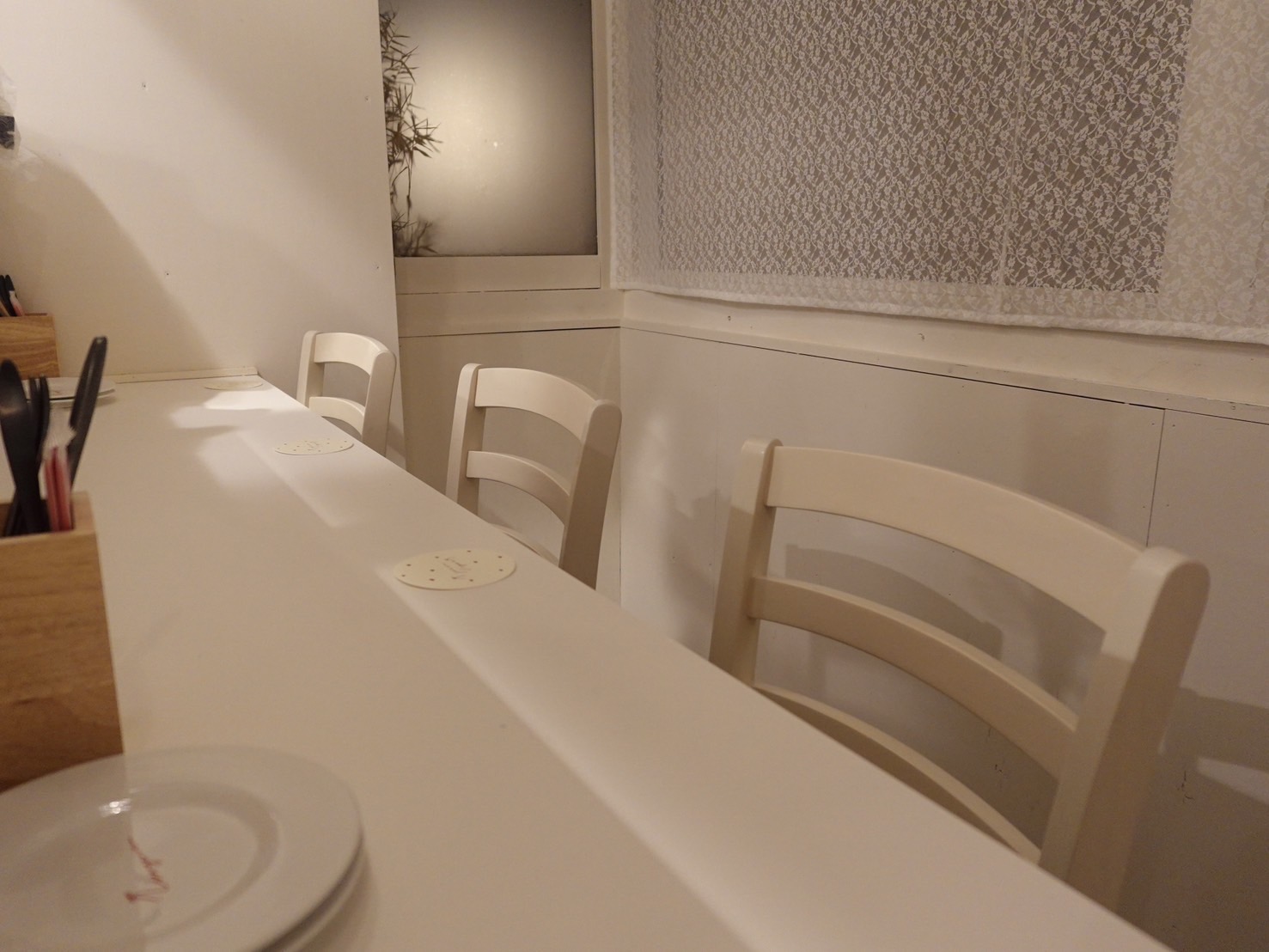 阪急烏丸駅から徒歩5分という駅近の立地ながら、路地奥にひっそりとたたずむ隠れ家イタリアンです。白や木を基調にしたカフェのような雰囲気の店舗は、古民家だと思えないほど明るい空間に仕上げました。
