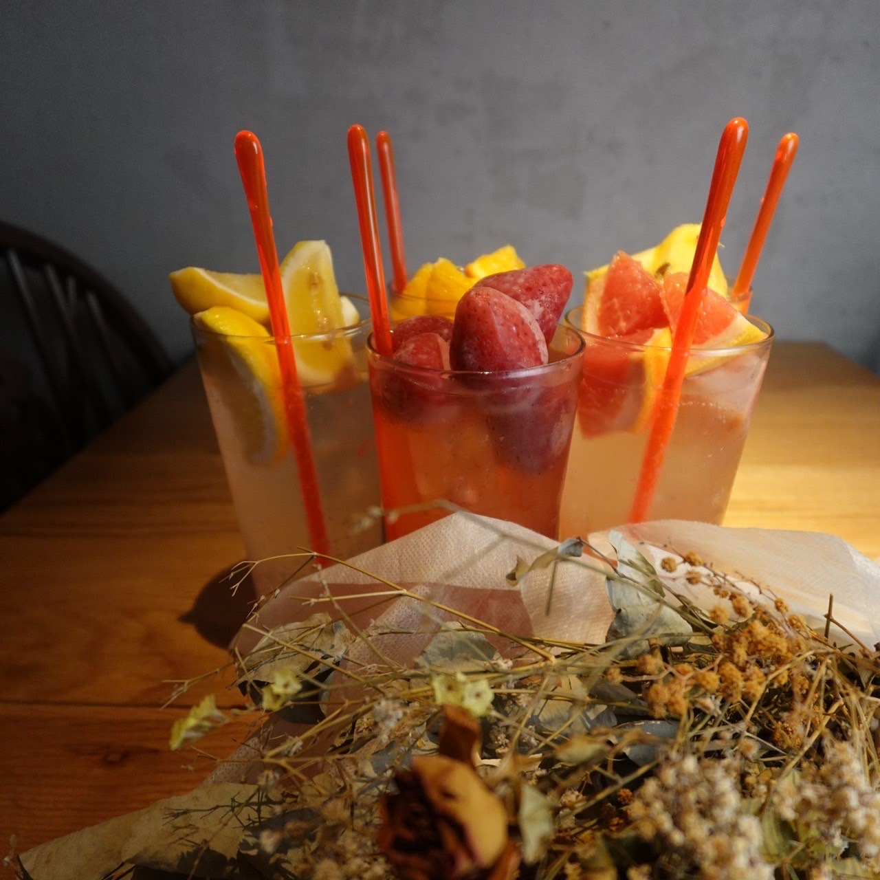 ドリンクは、「pink ribbon」「blue diamond」「tea lingerie」の3種類のオリジナルカクテル「lingerie cocktail」(各869円)をはじめ、「おイチゴフルーツサワー」 (759円)や「スペシャルアクセントモヒート」(869円)など見た目にもこだわったドリンクを30種類以上をご用意しています。
