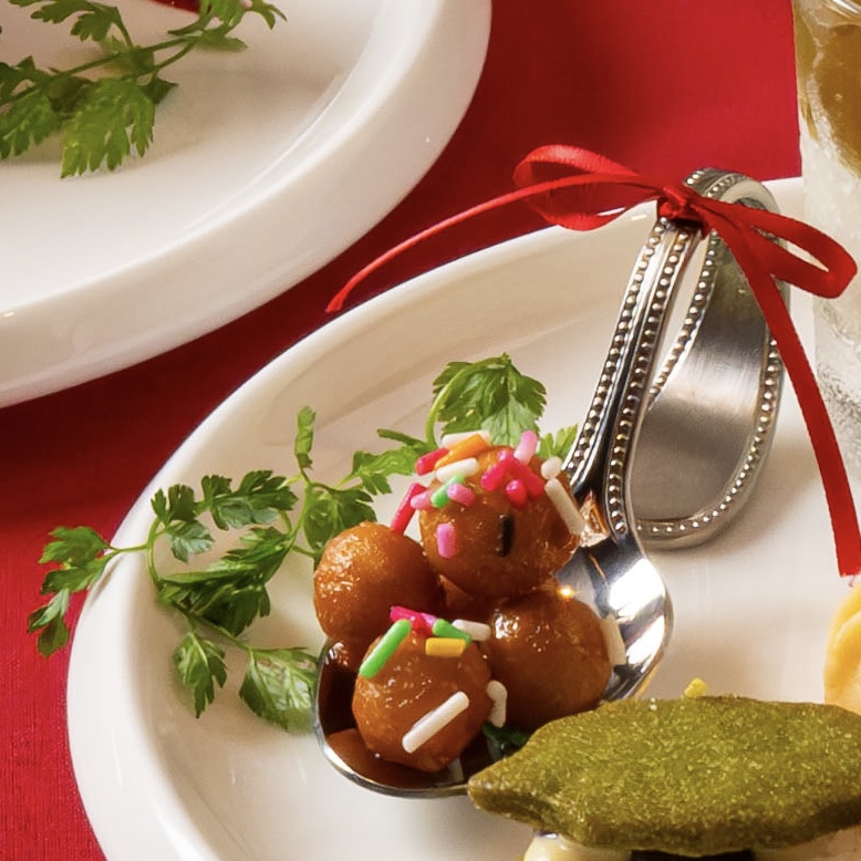 イタリアの伝統的なクリスマス菓子。セモリナ粉を使いモチっと食感に仕上げた小粒の揚げ菓子を、はちみつに絡めました。