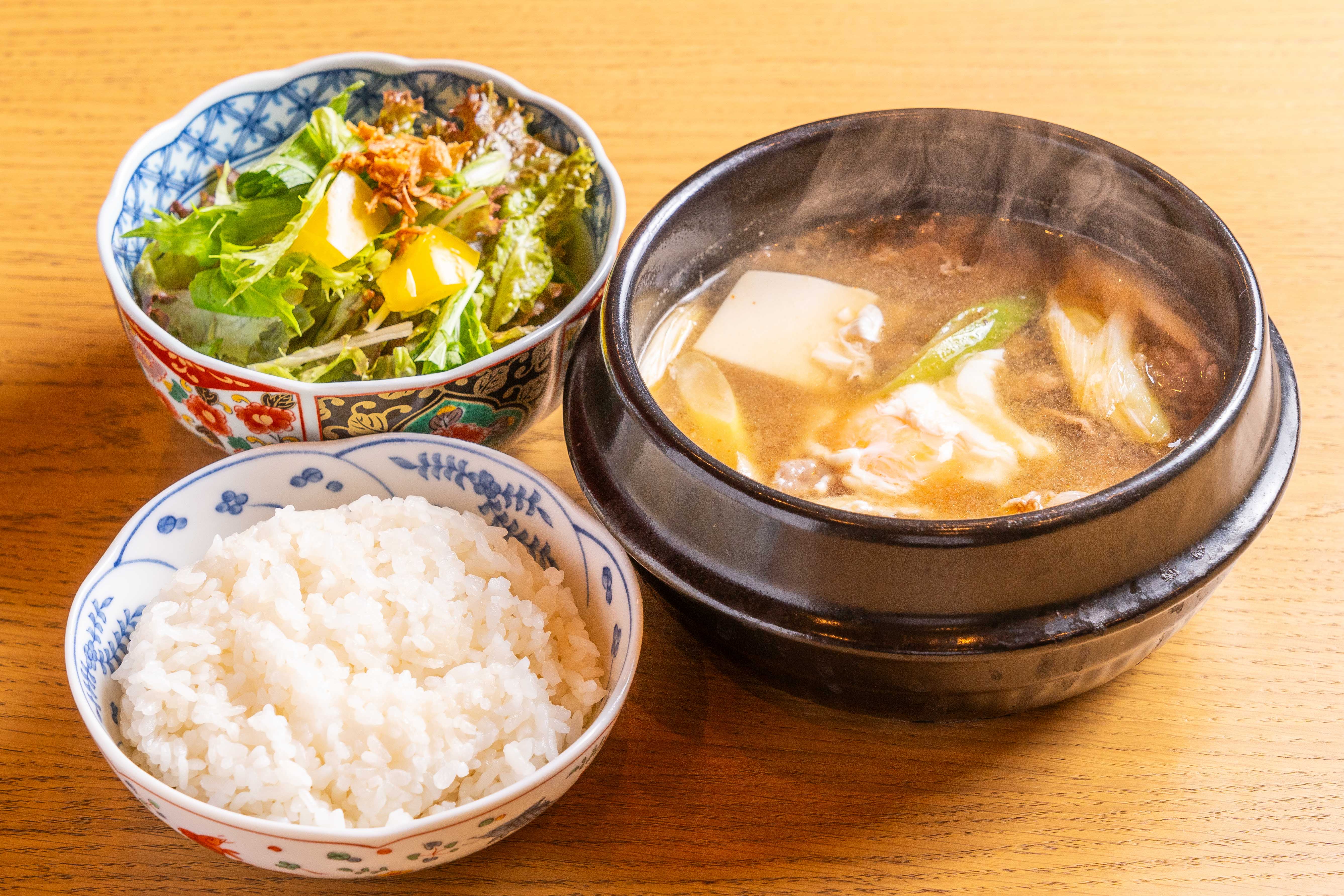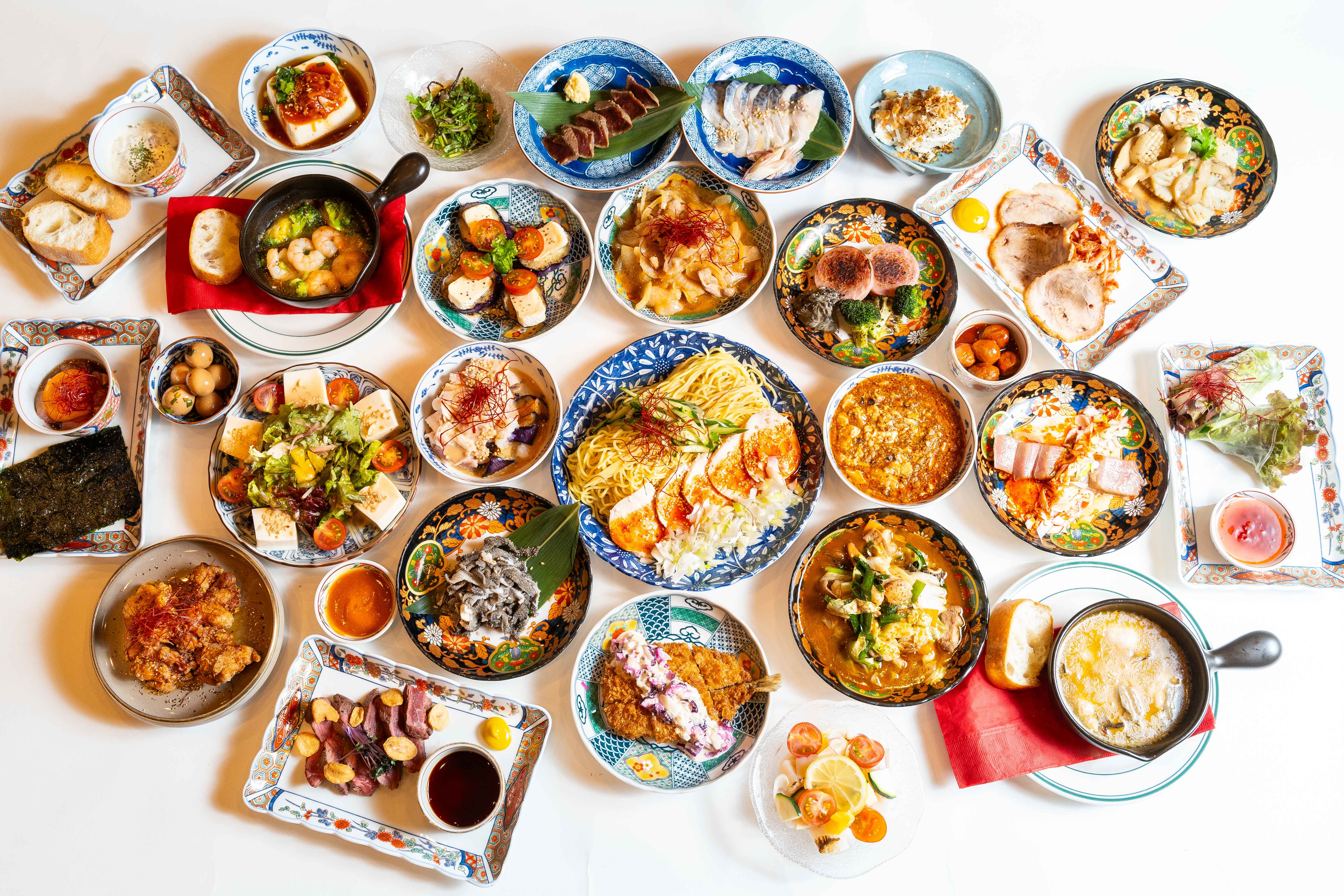 ディナータイムは60種類以上のアラカルトメニューが楽しめる居酒屋として営業。お酒のアテにぴったりな本マグロとアボカドのタルタル(638円)や、パスタ「揚げナスのアラビアータ」(858円)などをご用意します。豚バラ・イカ・あさりを形が無くなるまで煮込んだ「スンドゥブチゲ」(968円)や、うどん出汁に牛骨を加えて長時間煮込んだ「肉吸い」(605円)は、韓国式土鍋「トッペギ」に入れ熱々の状態でご提供します。