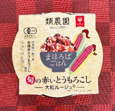 そこで、もっとお手軽に有機食品を召し上がっていただくことが可能で、かつ地域活性に繋がる商品として開発したのがこの「まほろばごはん 旬の赤いとうもろこし 大和ルージュ」です。原材料は、奈良で生まれた品種・有機赤とうもろこし「大和ルージュ」(奈良県宇陀市)、有機米、有機黒米、有機白だしと全て有機原料で製造しています。