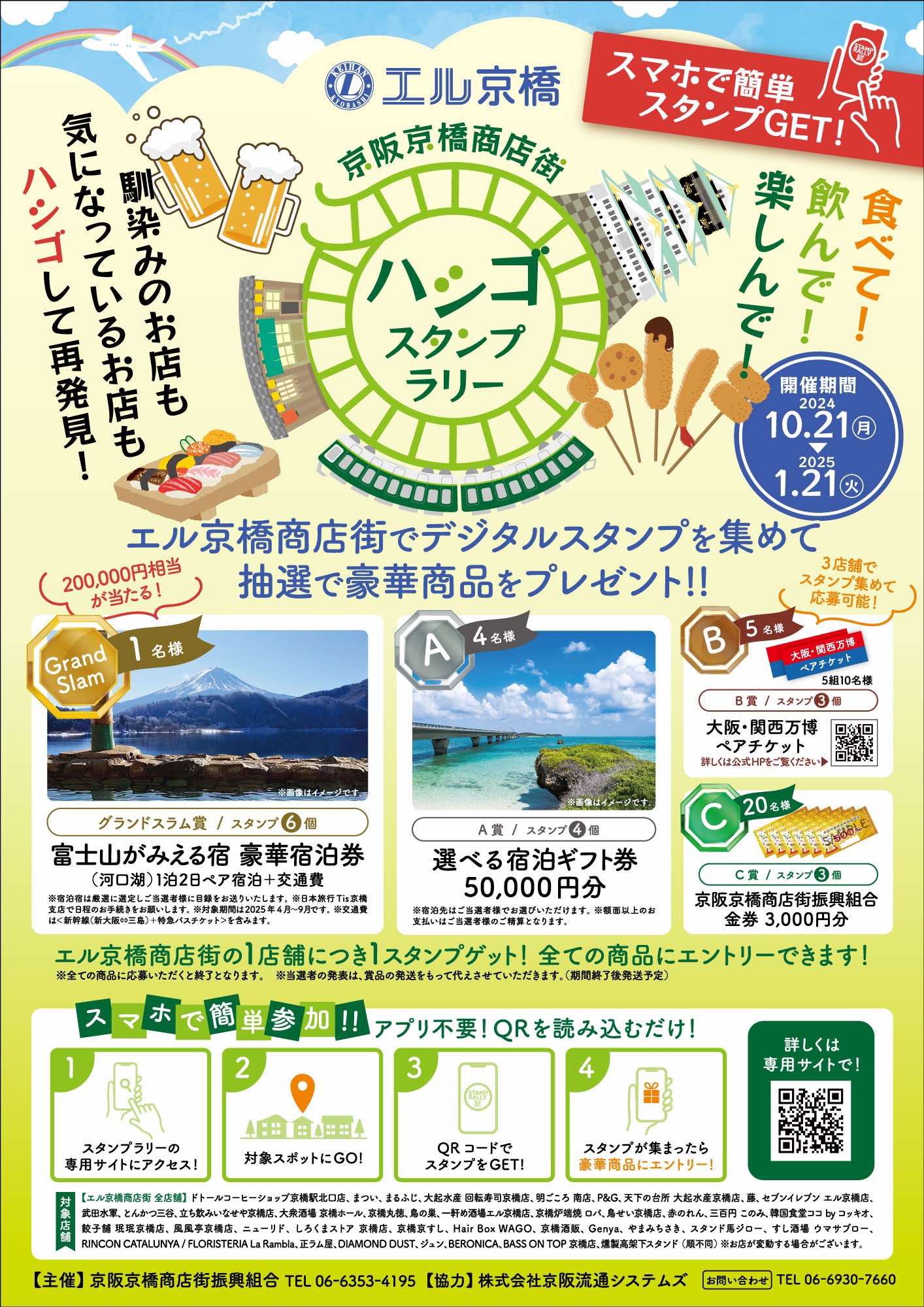 京橋商店街には、美味しいグルメやユニークなショップが満載!スタンプラリーを通じて、まだ行ったことのないお店を巡って、新しい発見を楽しみながら、豪華商品を手に入れるチャンスです。ぜひ、この機会に京橋を訪れてスタンプを集めてみてください!