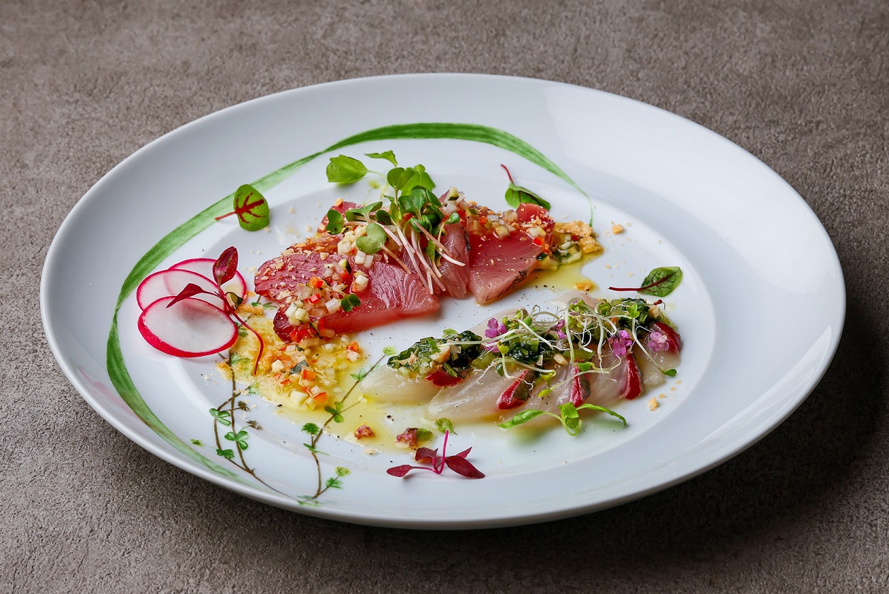その日仕入れた新鮮な魚を、柚子や大葉、九条ネギなどを合わせた和テイストのソースでお楽しみいただけます。
