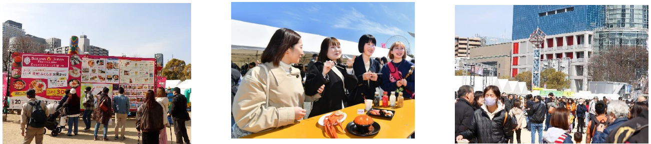 魚ジャパンフェスは、日本の大切な食文化で、栄養豊富な魚食の推進を目的に、東京で2回と大阪で1回の年3回開催している日本最大級の魚介グルメフェスティバルです。前身である「ジャパン フィッシャーマンズ フェスティバル~全国魚市場&魚河岸まつり~」が2016年にスタート。その姉妹イベントとして、魚ジャパンフェスは2019年2月に東京・代々木公園で初開催されました。昨年11月にお台場青海地区特設会場(東京都江東区)で開催された魚ジャパンフェスには4日間で約20万人が来場。これまでの累計来場者数は約210万人に上ります。大阪では2022、23年に万博記念公園(大阪府吹田市)で開催し、24年は会場を扇町公園に移して開催しました。