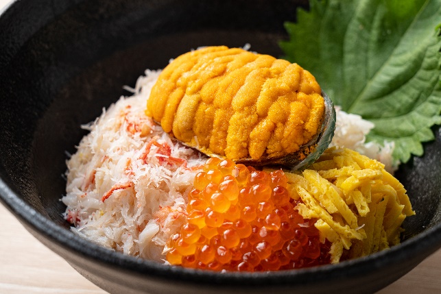 フェスでしか味わえないオリジナル限定メニュー「うに貝焼きかにみそ飯丼」が新登場します。ドドーンとひときわ存在感を放っているのが、福島・いわき地方の郷土料理「うに貝焼き」。大粒の貝殻にウニを山盛りで盛り付け、蒸し焼きにしました。火を通すことでウニの甘みが増します。かにみそを混ぜ込んだ秘伝のご飯に、うに貝焼きとカニのほぐし身、イクラもトッピングしました。