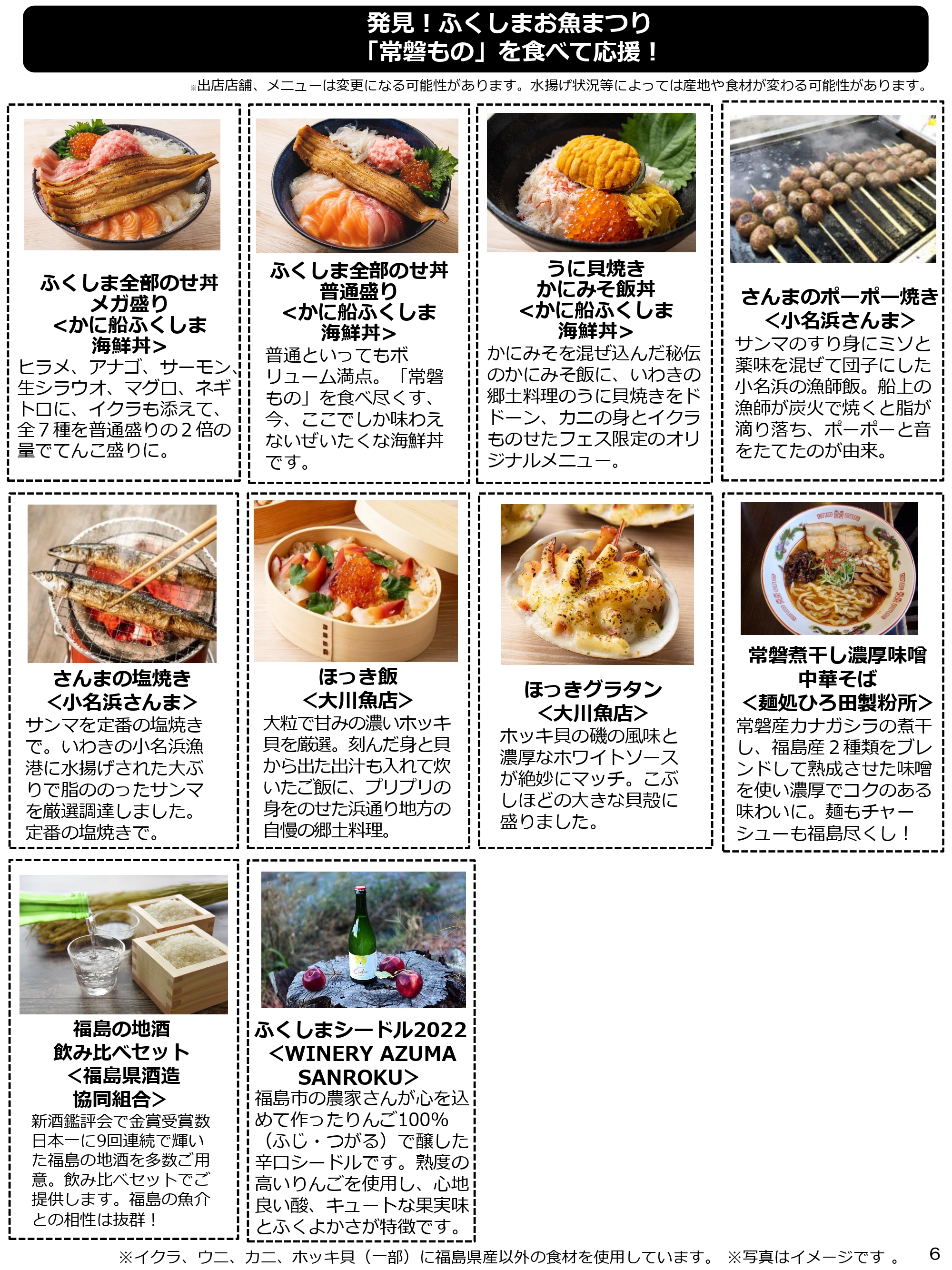 ※イクラ、ウニ、カニ、ホッキ貝(一部)に福島県産以外の食材を使用しています。