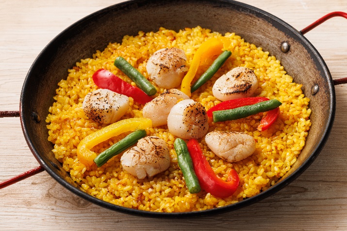 ■北海道産ホタテのパエリアを巨大鍋で最大200人前調理 具材で描くパエリアアートも披露!