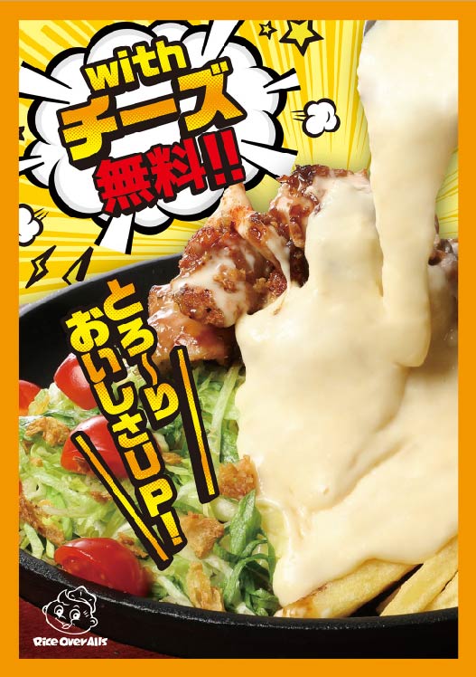 数々のメディアに取り上げていただいたupit’s Burgerの看板商品『溶岩deチーズバーガープレート』をモチーフに、熱々のチキンオーバーライスの上からチーズをたっぷりかけるトッピングを選択することができます。そして、すべてのオーバーライスメニューに無料でチーズトッピングが可能です。