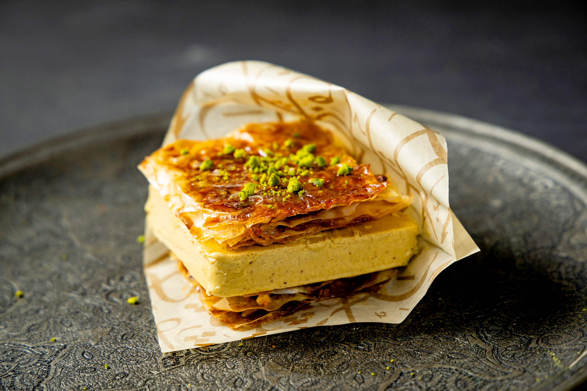 アラブの伝統菓子「バクラヴァ」を、ジェラートサンドにアレンジ。