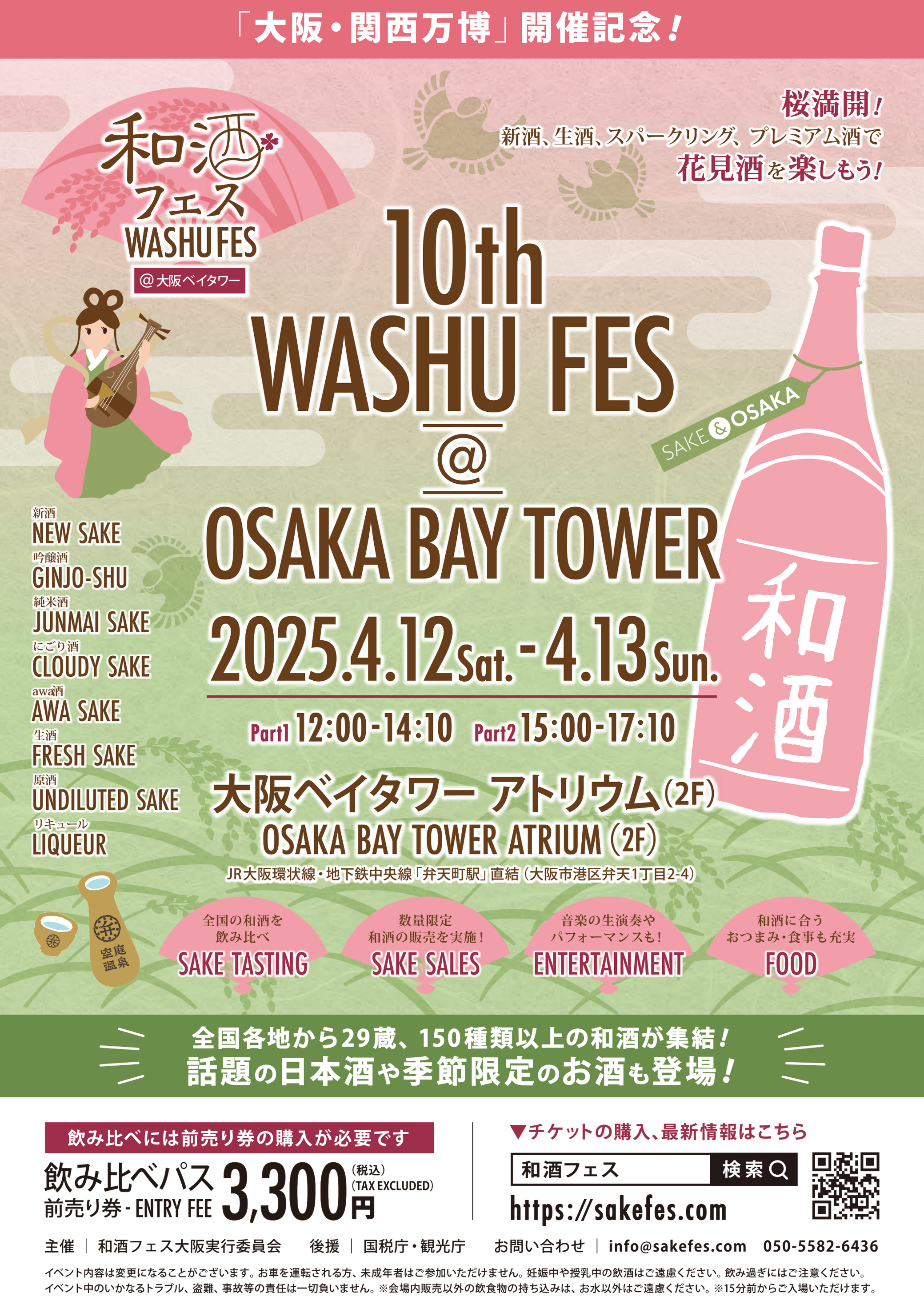 地方創生を応援する和酒フェス大阪実行委員会は「第10回和酒フェス@大阪ベイタワー」を開催いたします。