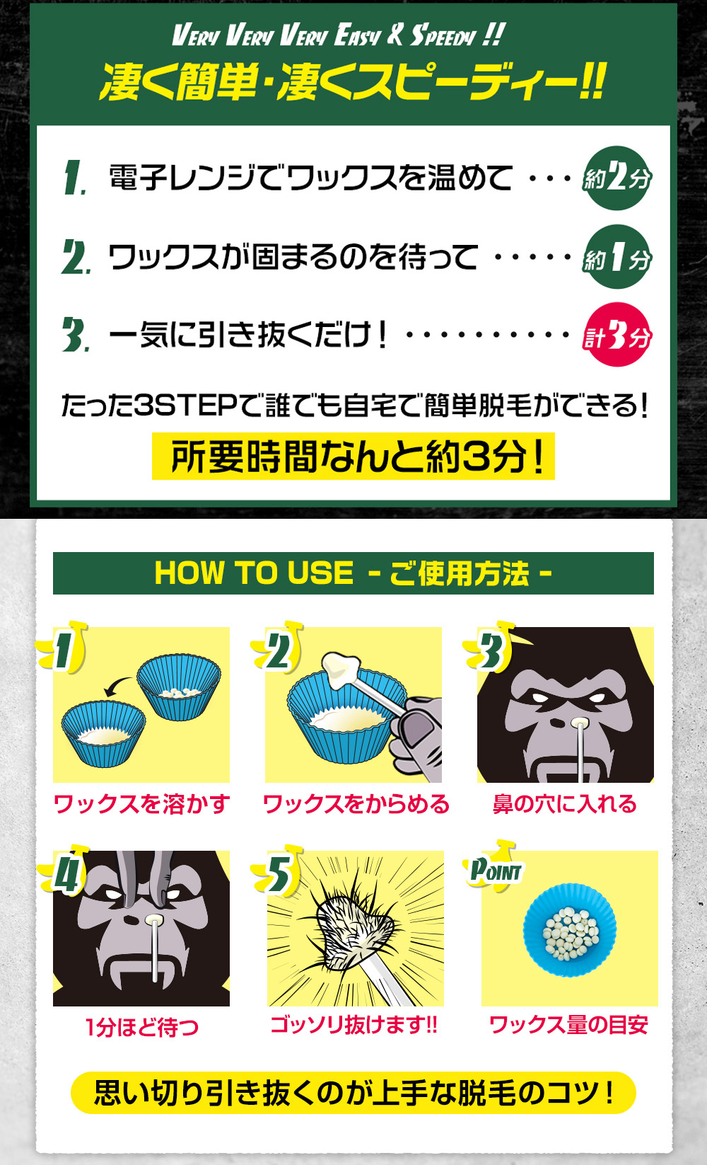 そんな鼻毛を撃退できる画期的な商品がメンズゴリラ鼻毛ワックス脱毛キットです!