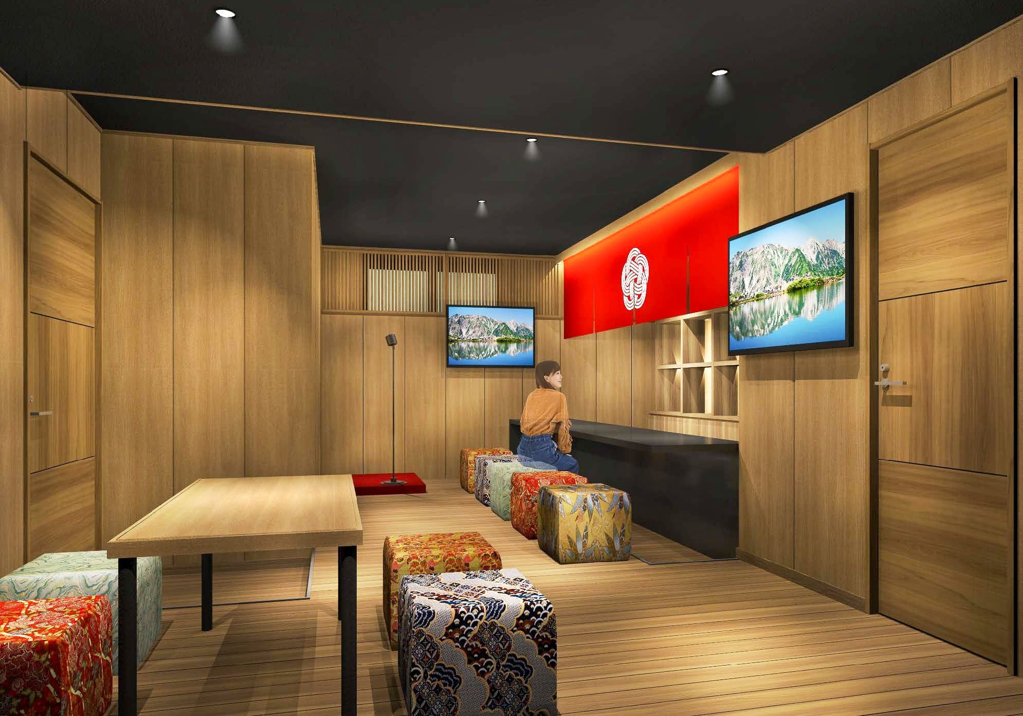 「旅先での一期一会を楽しむ場を」をコンセプトに、日本の伝統的な社交場であった「スナック」を現代風に再解釈。宿泊者限定の空間で、宿泊者同士やスタッフとの交流を楽しめる新スポットが誕生します。京都の伝統文化を感じるデザインと、心をほぐすお酒・カラオケをお楽しみいただきながら、ご寛ぎいただけるひとときを提供いたします。※スナックのオープンは4月12日以降になる場合がございます。