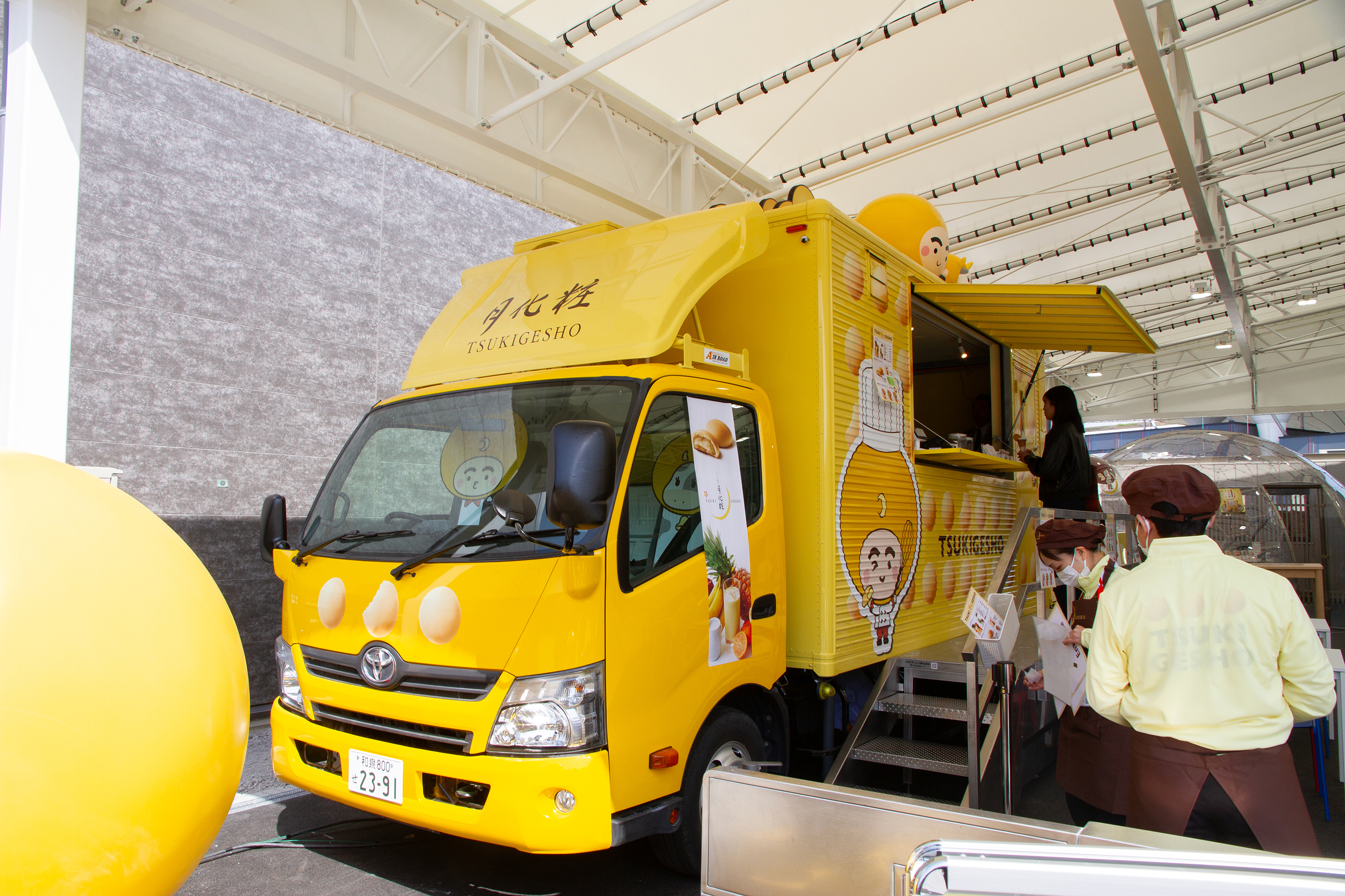 中でも一番のおすすめは月化粧のキッチンカーで販売している焼きたて月化粧 200 円。大平サブローさんの TVCM でお馴染みの「みるく饅頭 月化粧」は、バターとミルクたっぷりのやさしい甘さのおまんじゅう。2 秒に一個売れている大阪みやげの定番です。販売売上総数 1950 万個を突破し、今年 5 月 21 日に発売 15 周年を迎えます。キッチンカー内のオーブンで焼き上げた焼きたての月化粧は、外がサクッとした皮で、中はとろっとしたみるく餡。やさしい甘さでなんとも言えない美味しさです!定番の個包装のしっとりとしたなめらかな味わいのおまんじゅうとは、またひと味違います。焼きたてならではの月化粧をぜひご賞味ください。