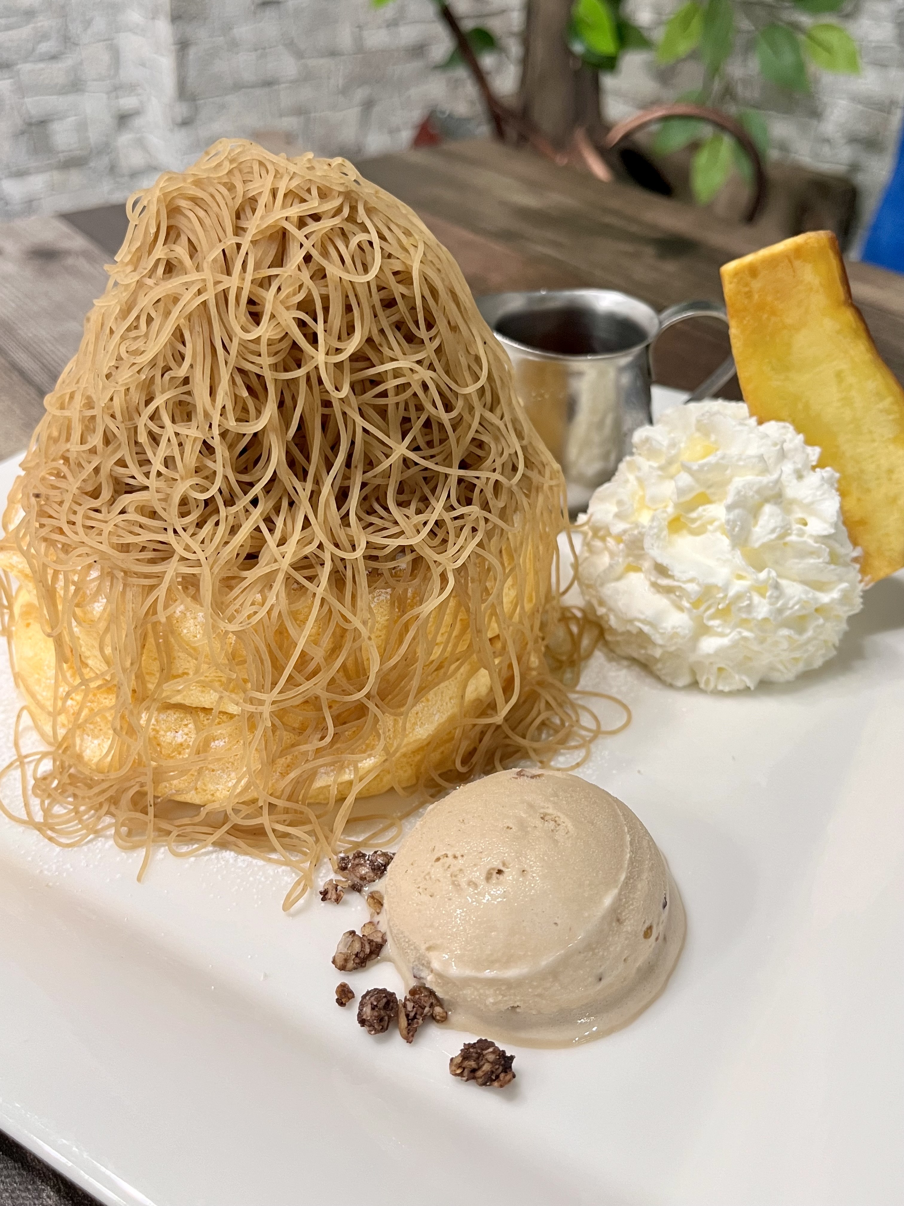 お客様の目の前でモンブランを絞ります。このテーブルパフォーマンスは一番人気があります。