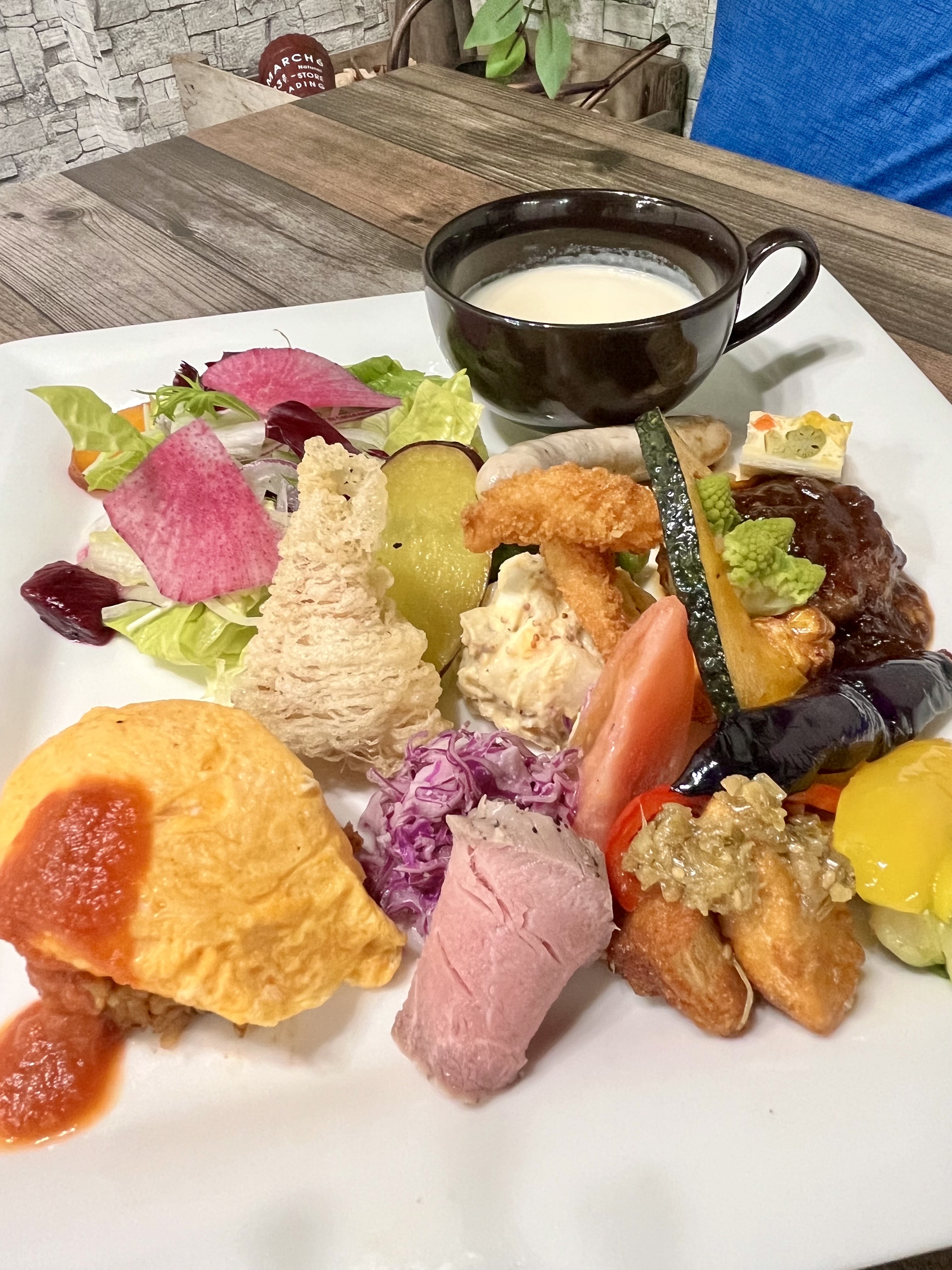 カフェグリナリーは、パンケーキだけでなく、季節の新鮮な素材を使ったサラダやパスタ、ランチ一番人気の大人のお子様ランチなど、多様なメニューを取り揃えています。特にホテル仕込みのスープは絶品でお客様から高い評価を得ています。