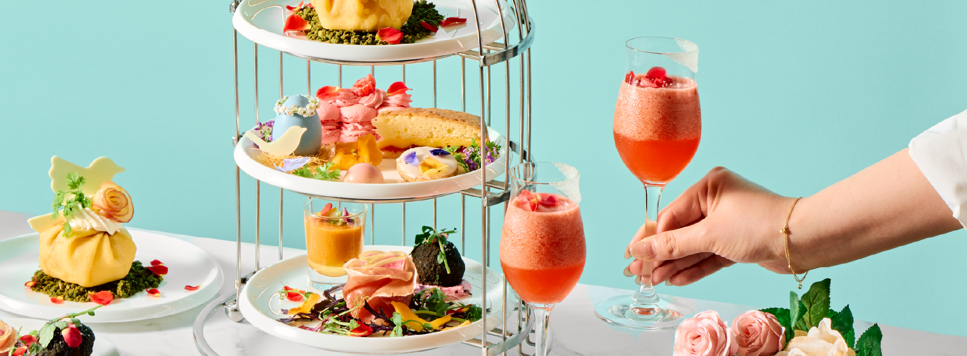 バラの名所として知られる中之島公園と靭公園の間に位置する当ホテル。5月に見頃を迎える二つのバラ園巡りをさらにお楽しみいただこうと、昨年に続き、バラをテーマにしたアフタヌーンティーをご用意しました。